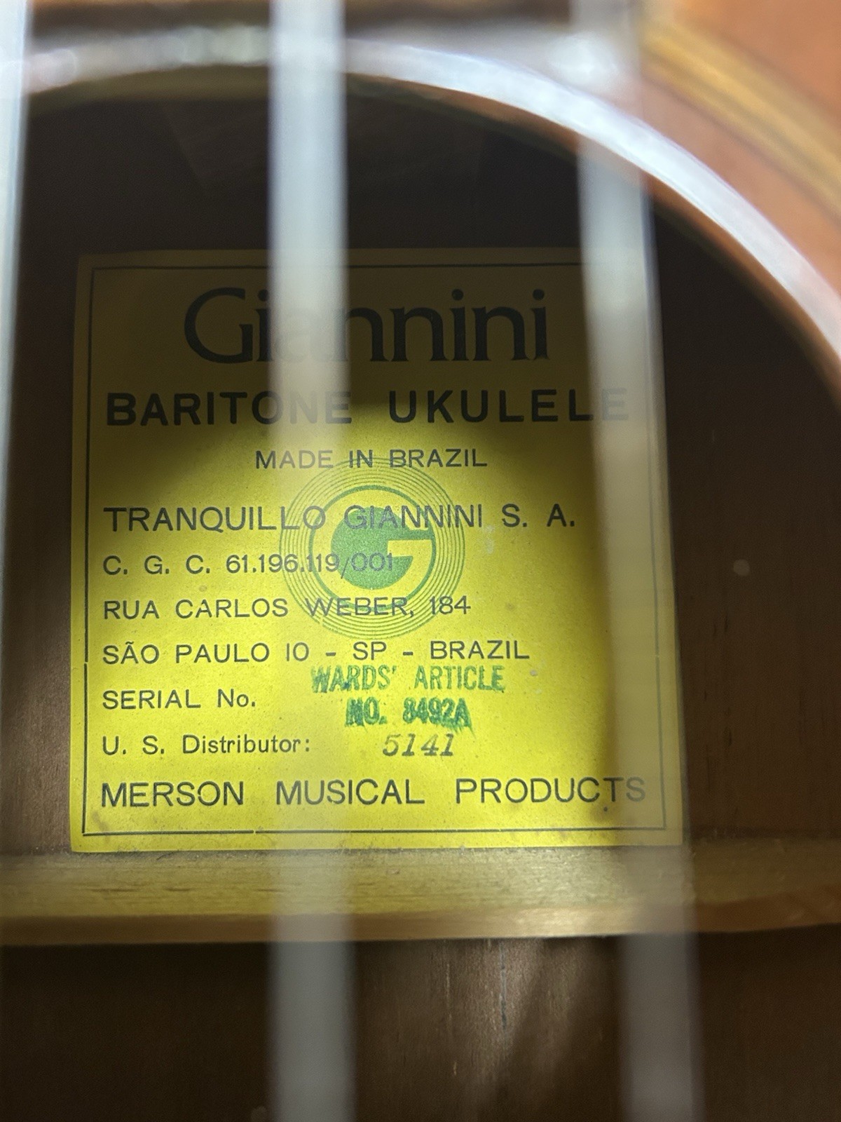 Vintage Tranqillo Giannini Baritone Ukulele Uke Brazil Mahogany Merson Musical