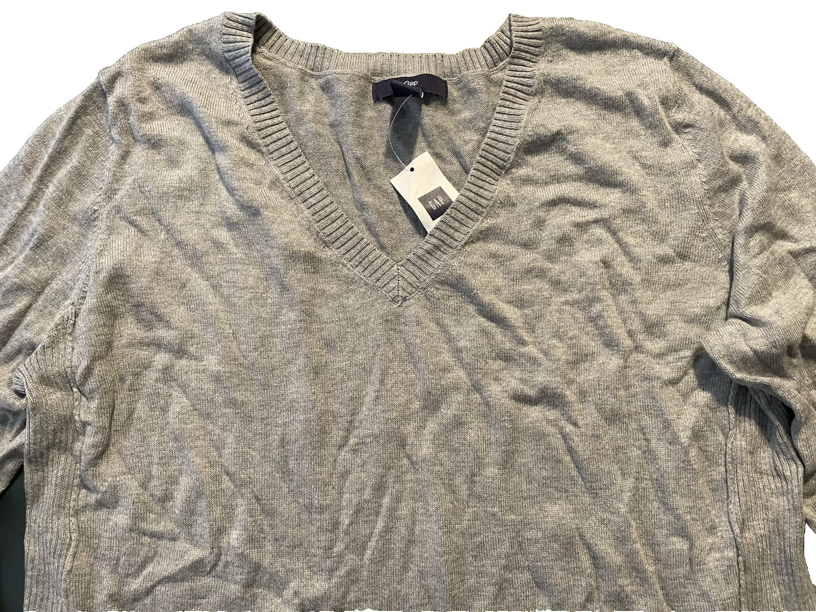 как выглядит Gap NWT Womens Size L Light Gray V Neck Sweater w/ Ribbed Trim at Sides фото