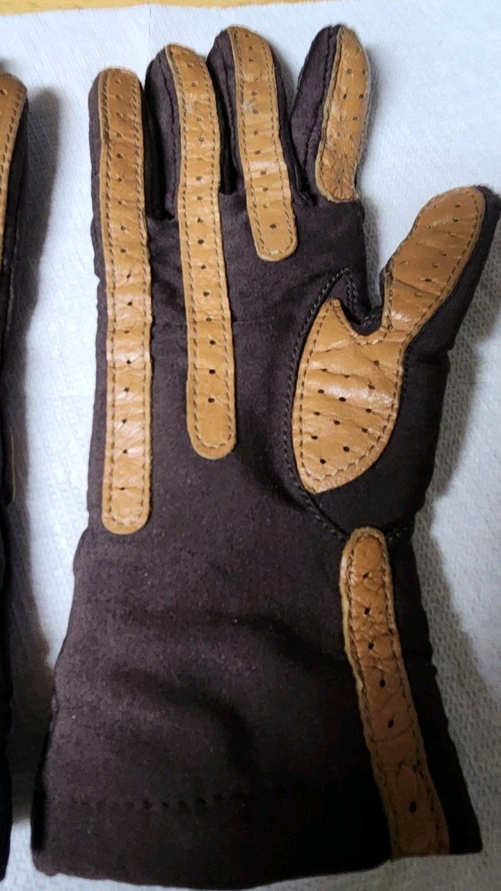 как выглядит VTG Gloves Isotoner Aris Stretch Womens Driving Gloves Nylon Spandex Brown SM фото