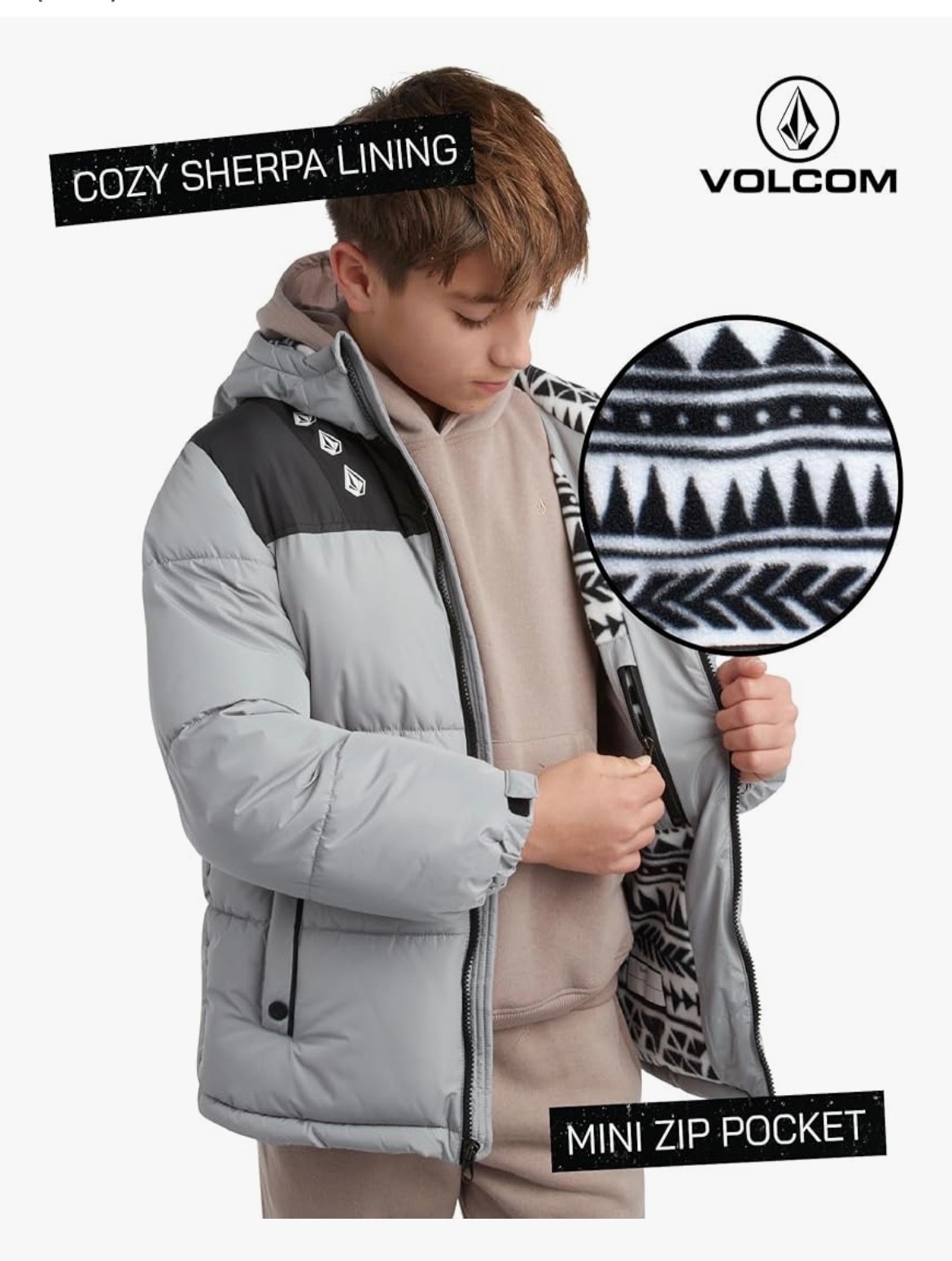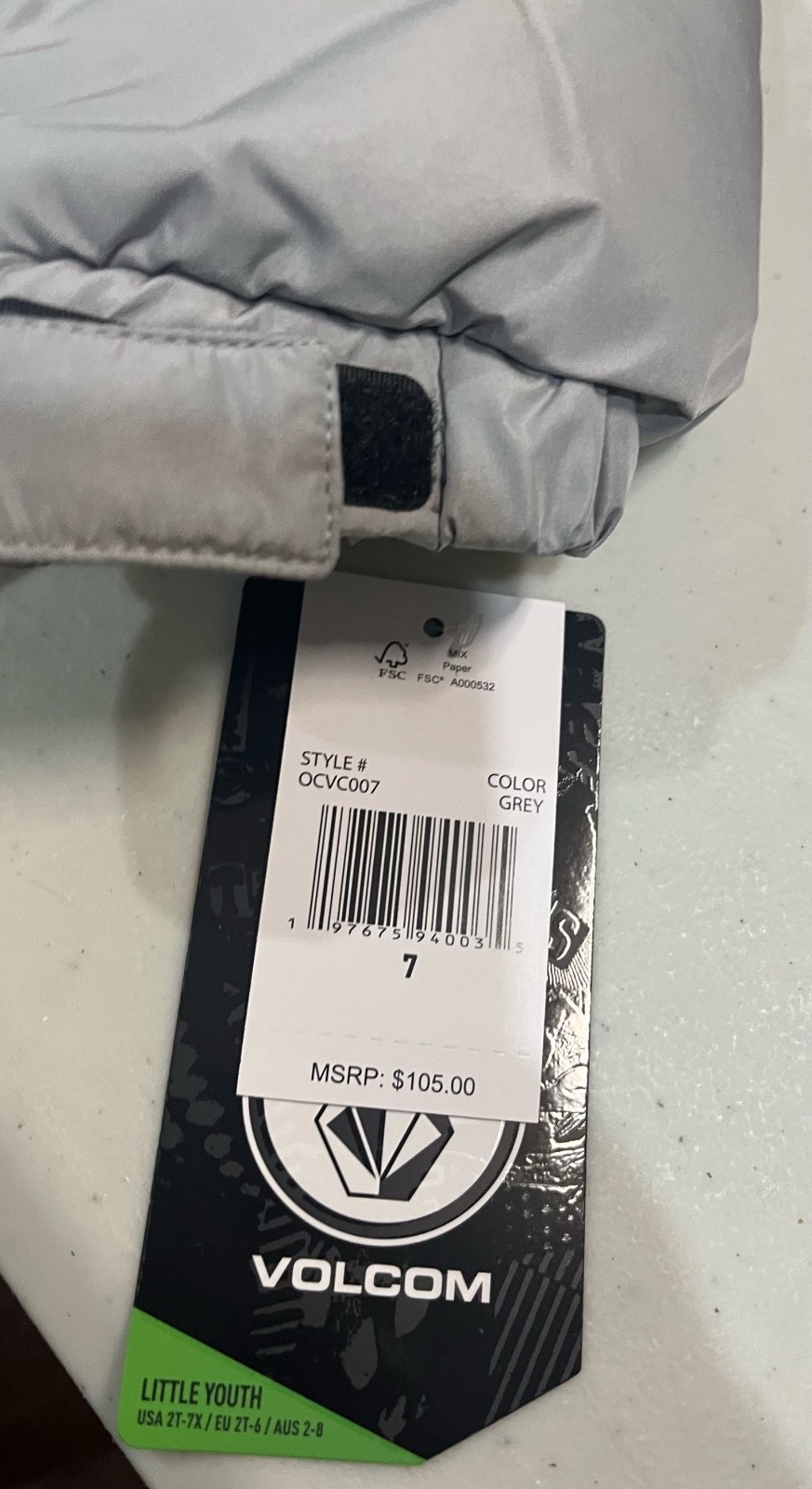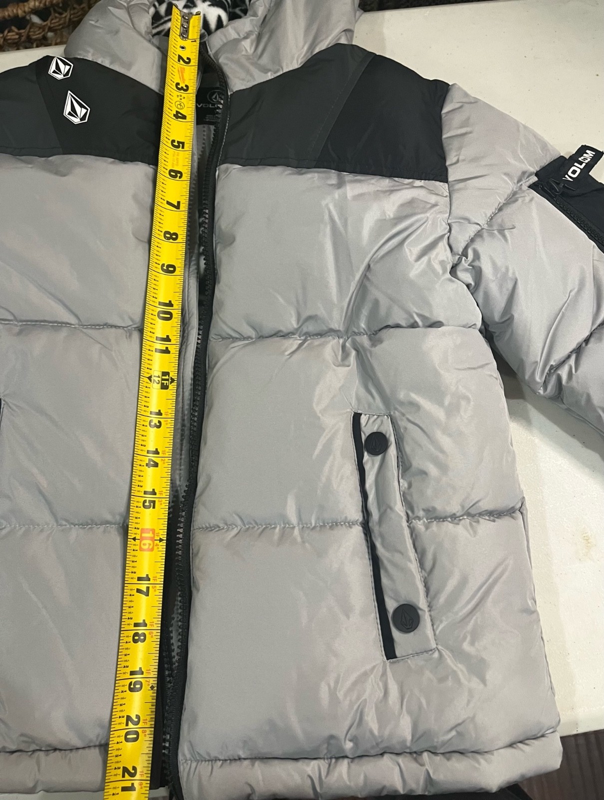 как выглядит Volcom Insulated Puffer Jacket Winter Coat Multi Weather Black/Gray Size 7 NWT фото