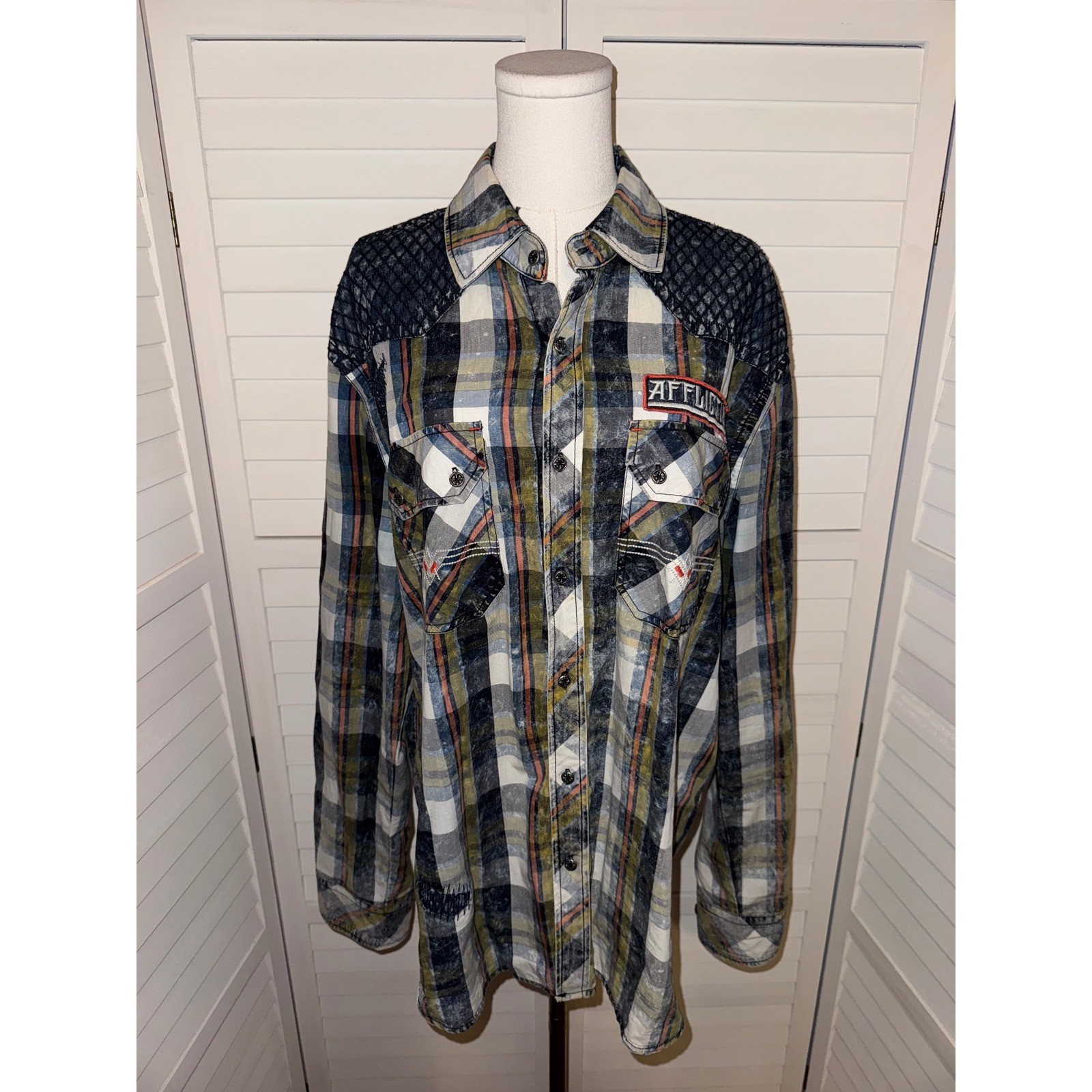 как выглядит Affliction Blk Premium Plaid Long Sleeve Shirt Button Up American Custom Size XL фото