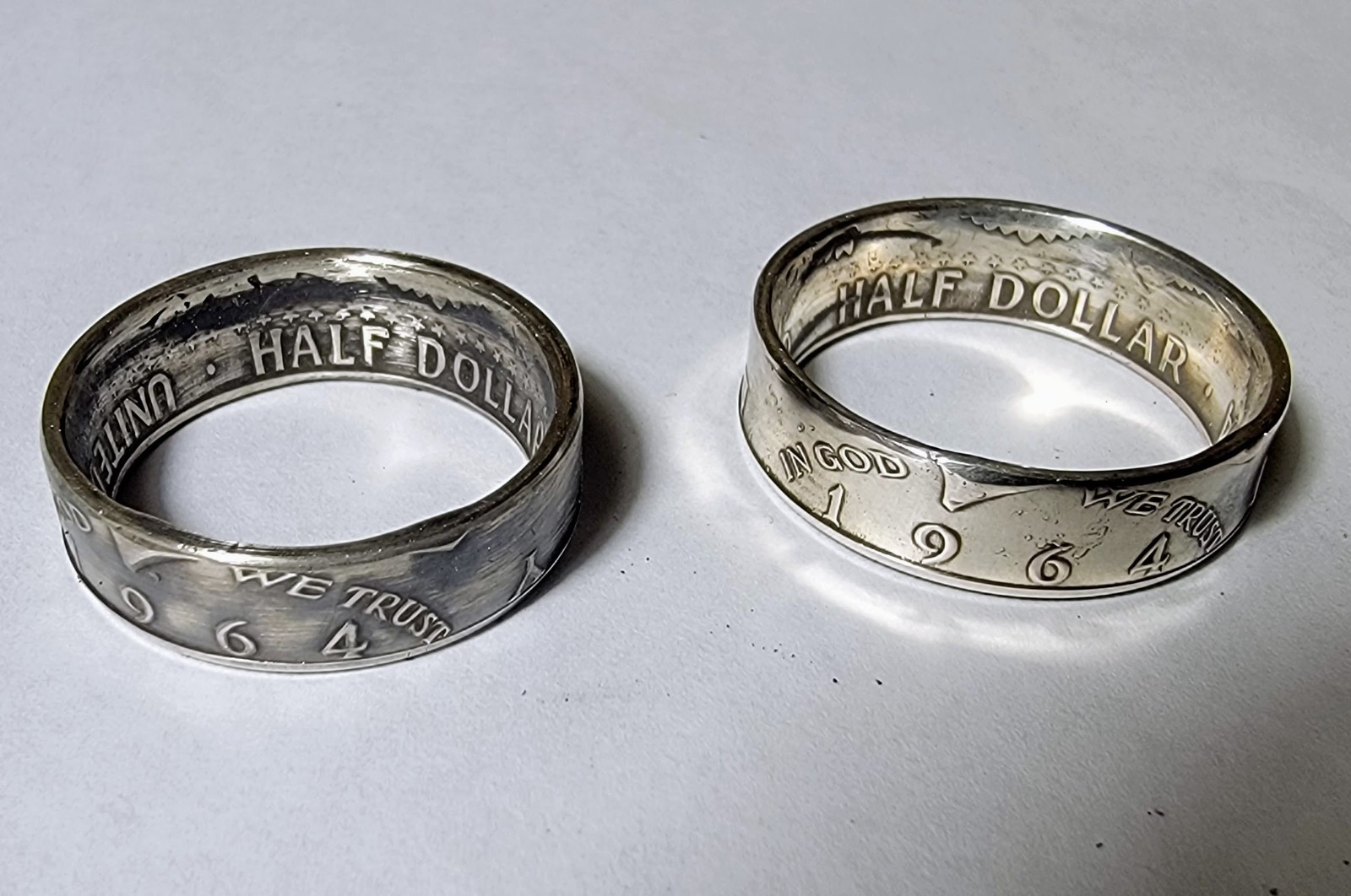 silver 1964 kennedy half dollar coin ring choose size 9-15 heads out