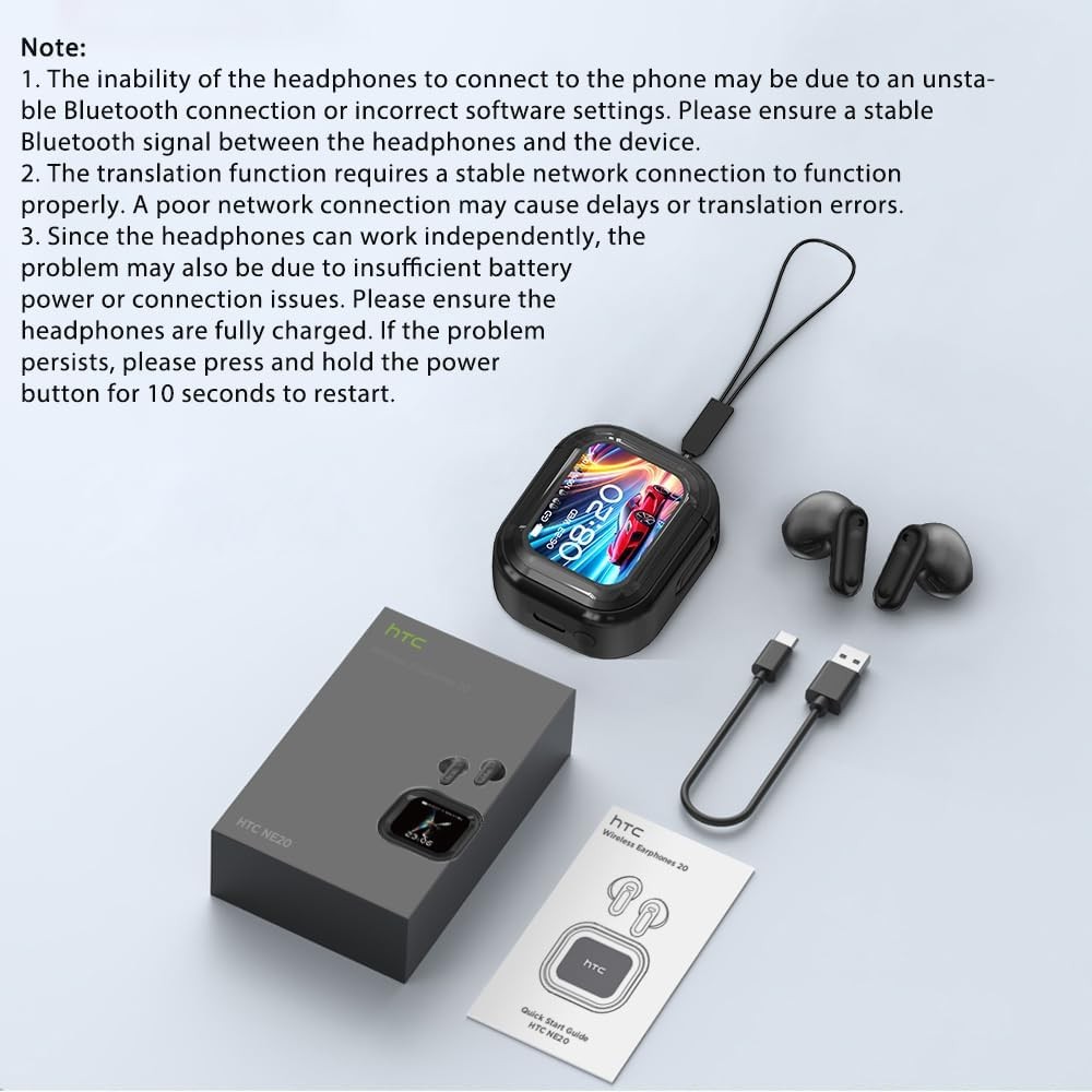 NE20 Earbuds, NE20 Translation Earbud, 6 Translation Modes, LCD Touch Screen