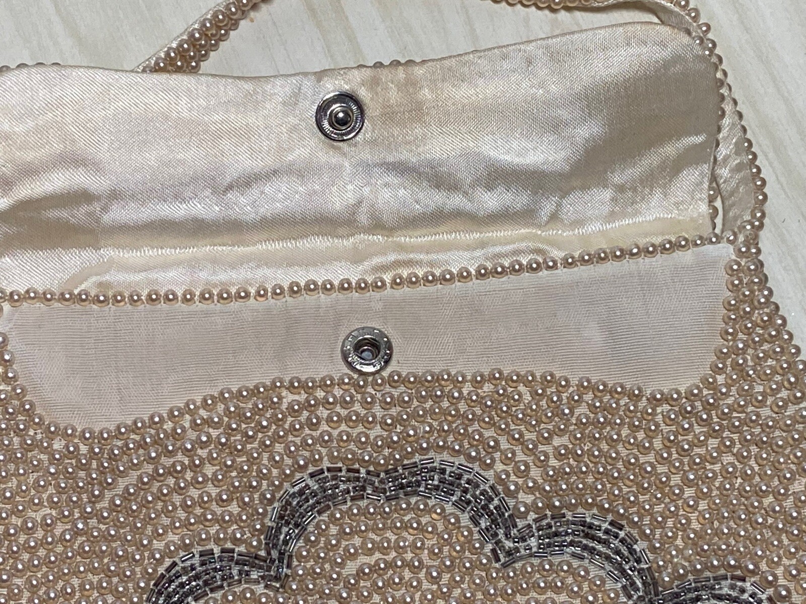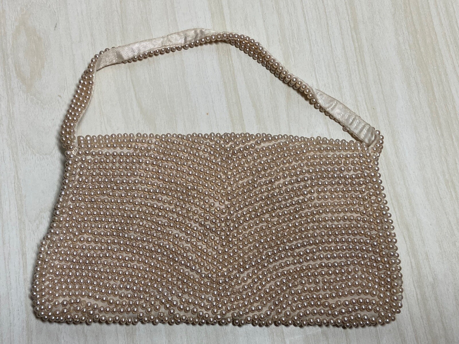 как выглядит Vintage Beaded Purse Handbag Made In Japan Bridal Clutch Pearl Scalloped Design фото