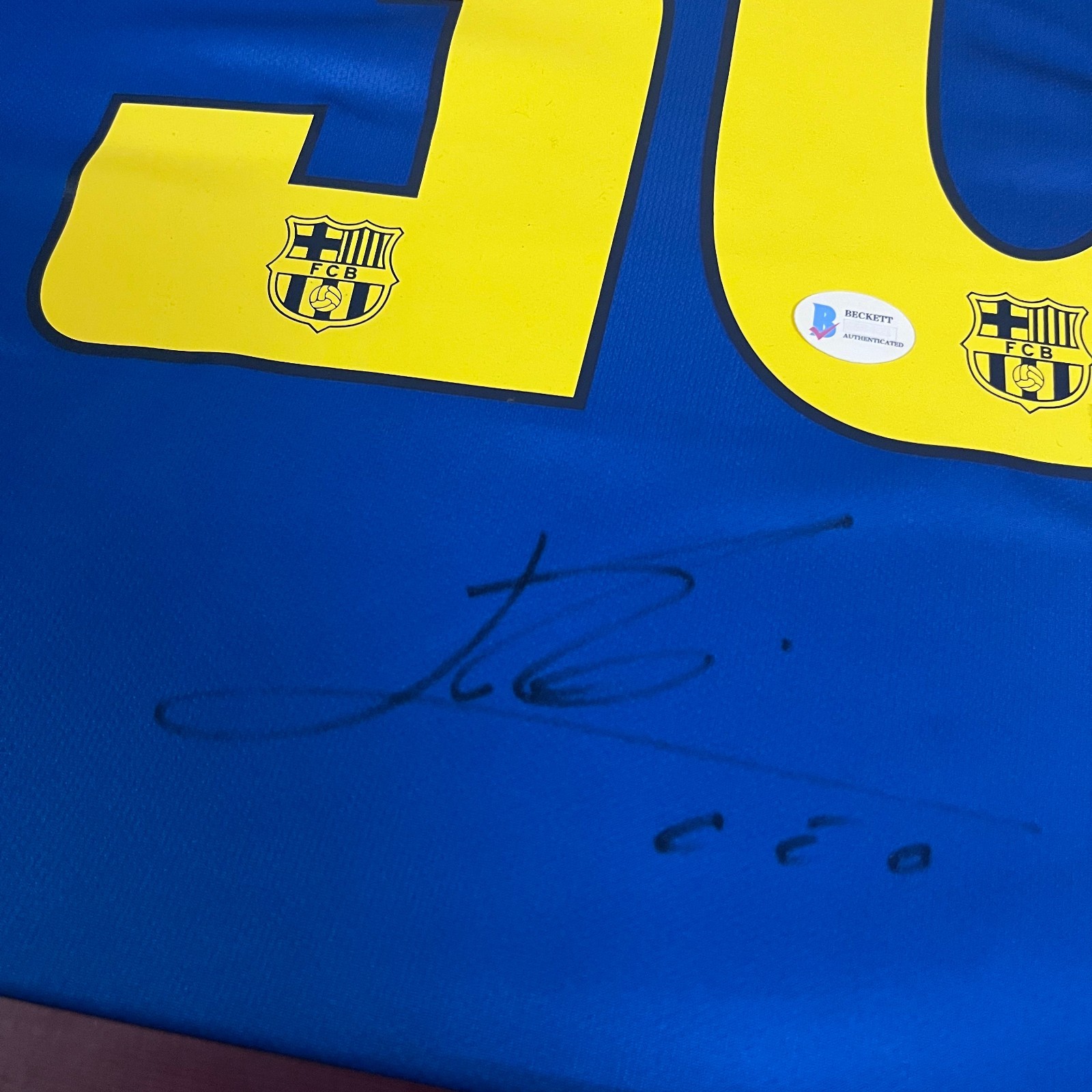 Lionel Messi 30 Signed Framed Barcelona Jersey Beckett COA 35x50cm Display