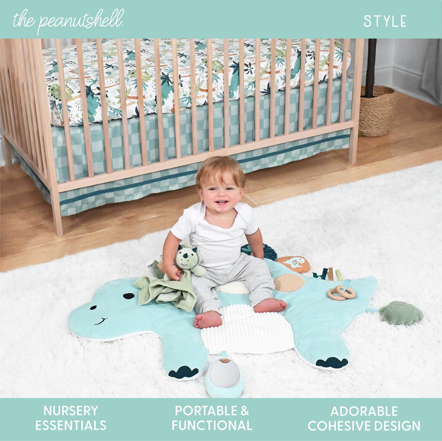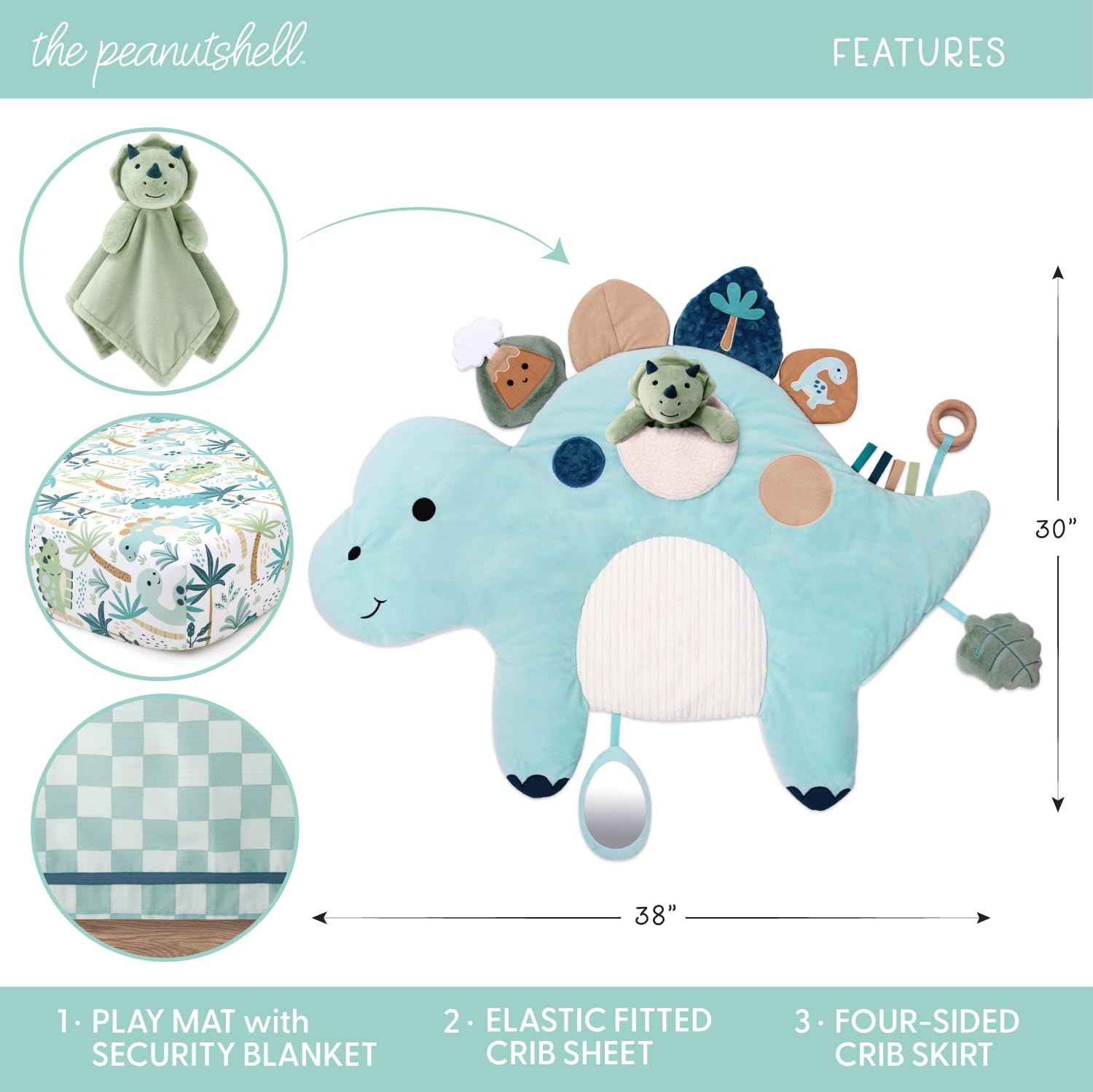 The Peanutshell 4 Piece Nursery Bundle: Crib Sheet Dinosaur Crib, Green