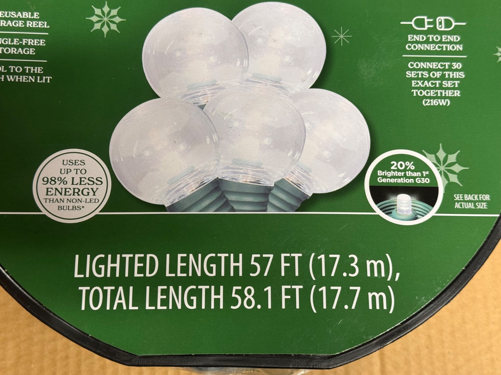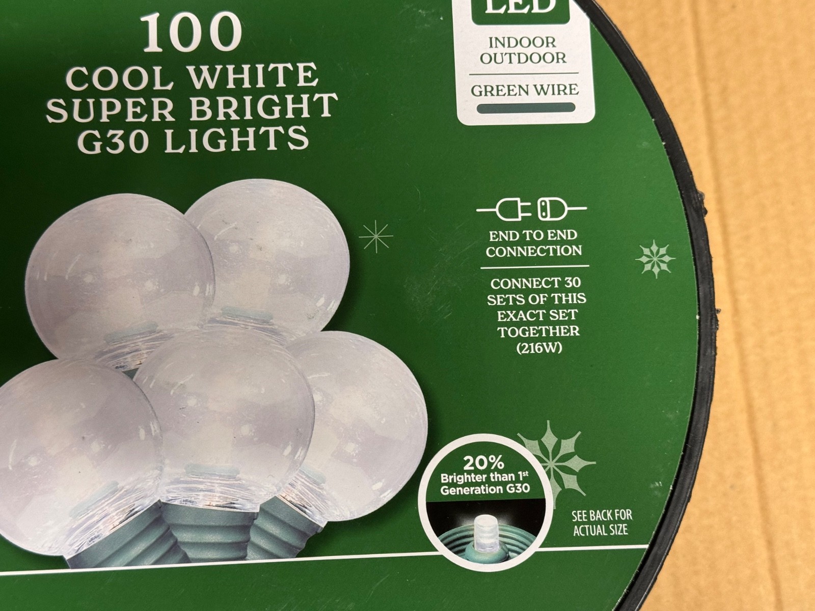 NEW 2025 HOLIDAY TIME 100 COOL WHITE LED Super Bright G30 Lights GRN Wire 58.1'
