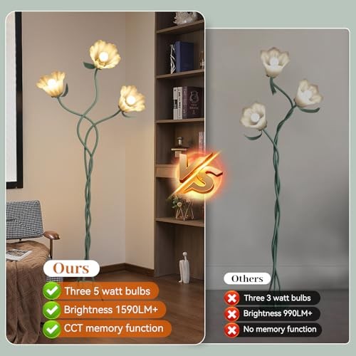 Vintage 3 Heads Flower Floor Lamp with Adjustable Gooseneck Corner Standing