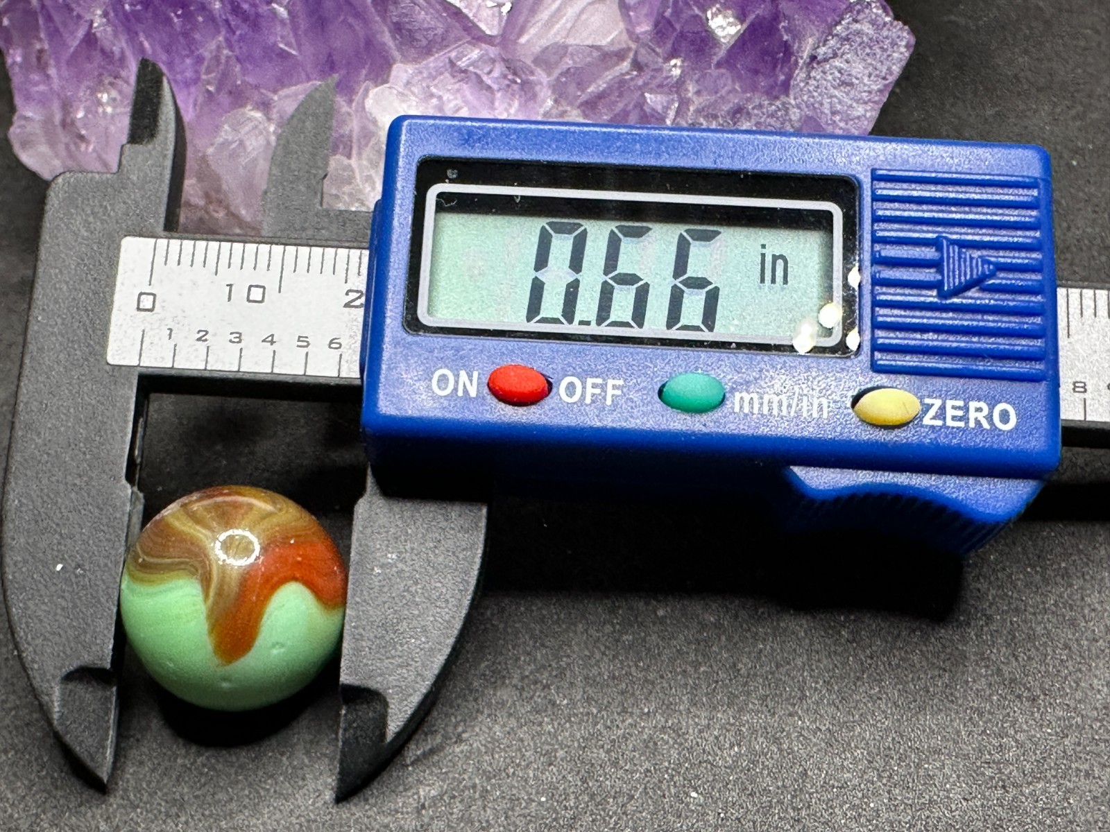 Vintage Akro Agate Patch Marble Blended Brown/Orange Mint Green - .66 Good--