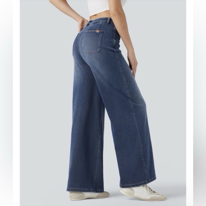 как выглядит Halara Flex High Waisted Tummy Control Wide Leg Stretchy Knit Jeans XL Regular фото