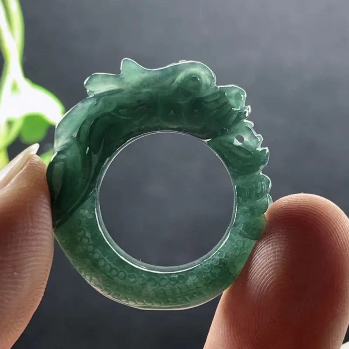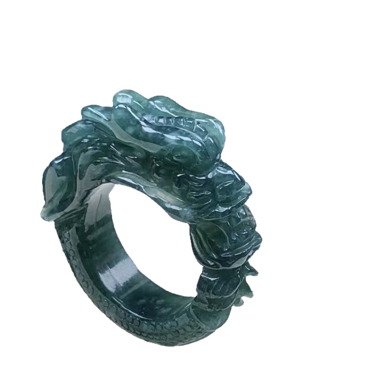как выглядит Certified natural A-grade jadeite Blue water 3D carved dragon ring фото