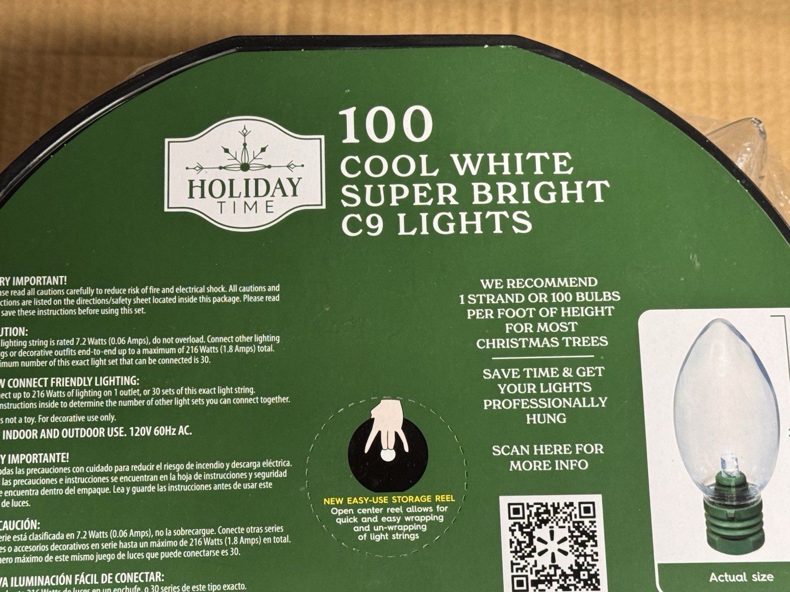 NEW Holiday Time 100 Count COOL WHITE LED Super Bright C9 Lights 58.1 FT