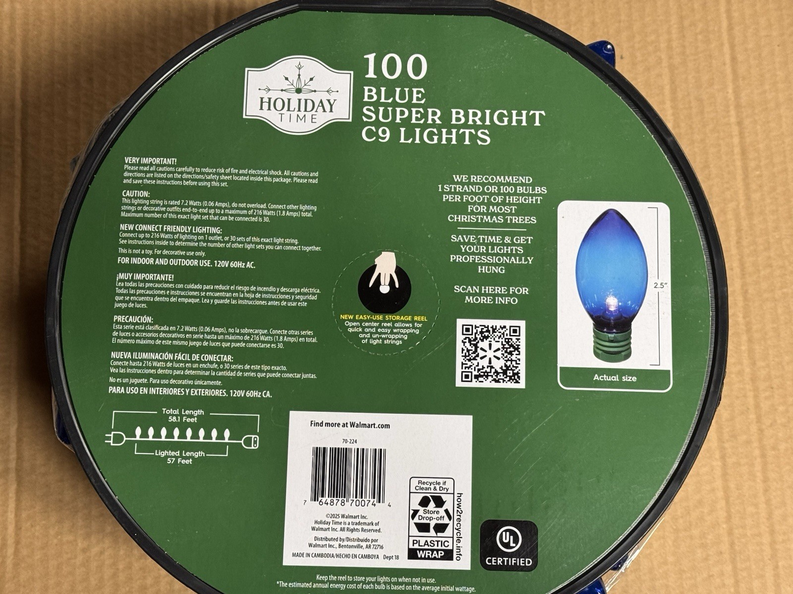 NEW Holiday Time 100 Count BLUE LED Super Bright C9 Lights 58.1 FT
