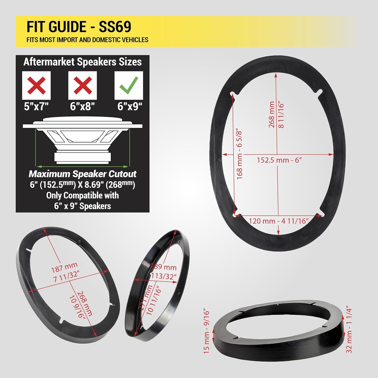 SS69 1.25 Universal Car Speaker Spacer Rings for 6X9 Aftermarket Speakers Comp