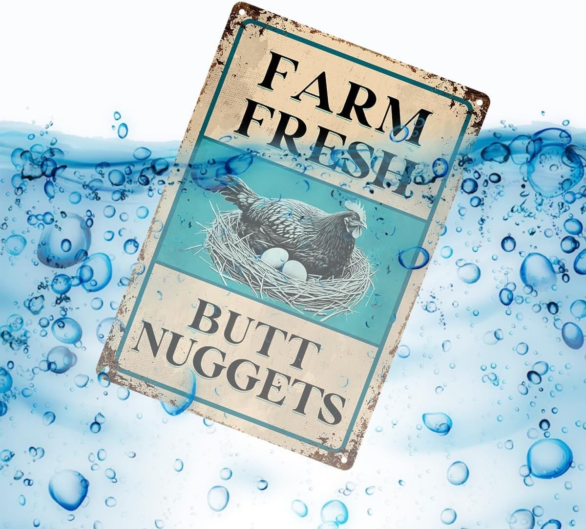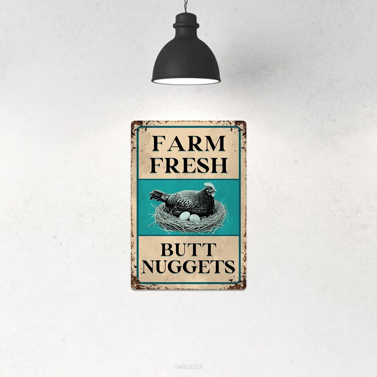 • Funny Chicken Coop Tin Metal Signs Home D cor 8x12 Farm Fresh Butt Nuggets Hen H