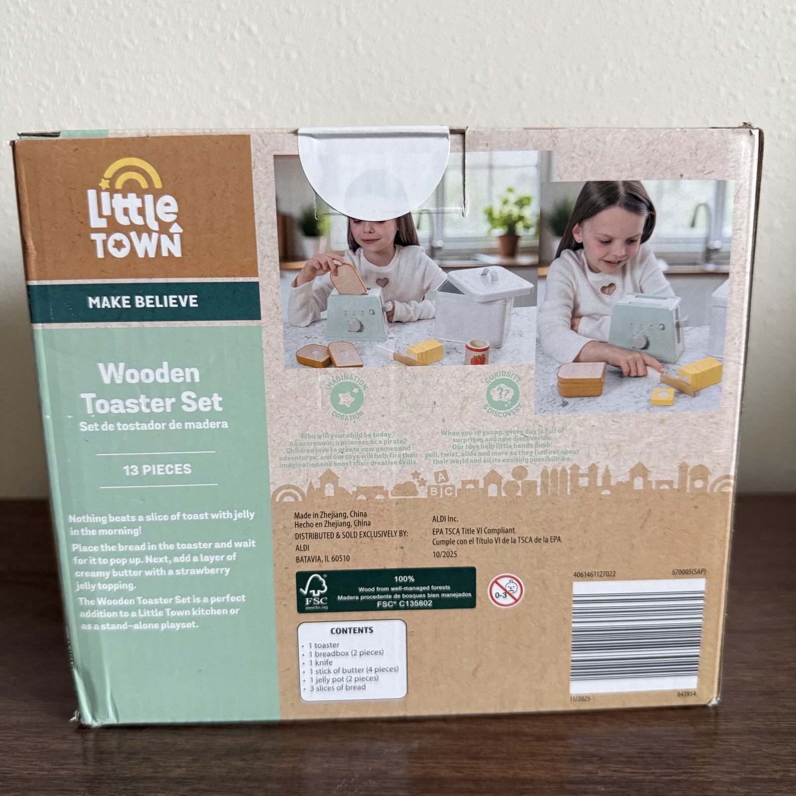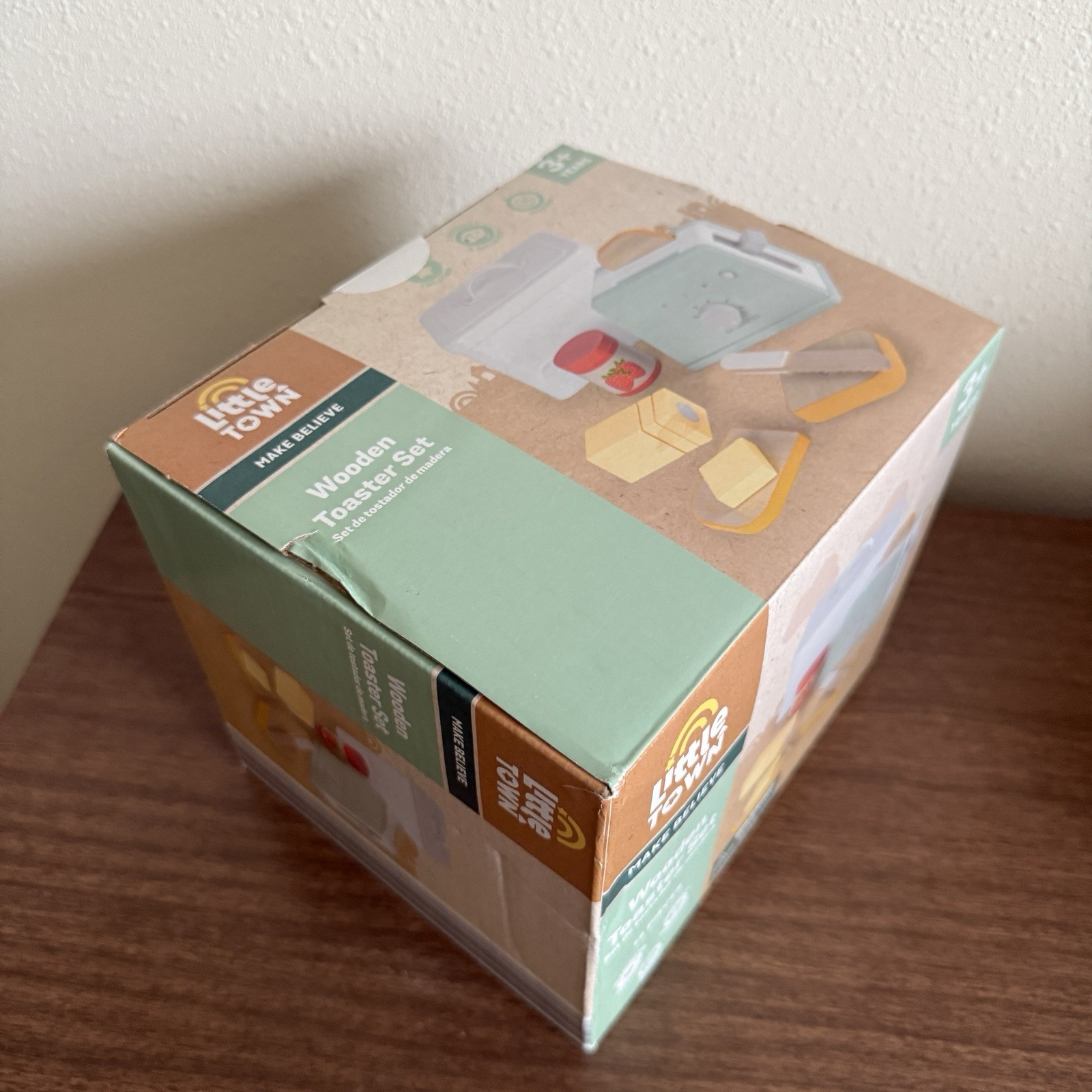 как выглядит Aldi Little Town Make Believe Wooden Toaster Set Butter Bread Box Jam Toy Play фото