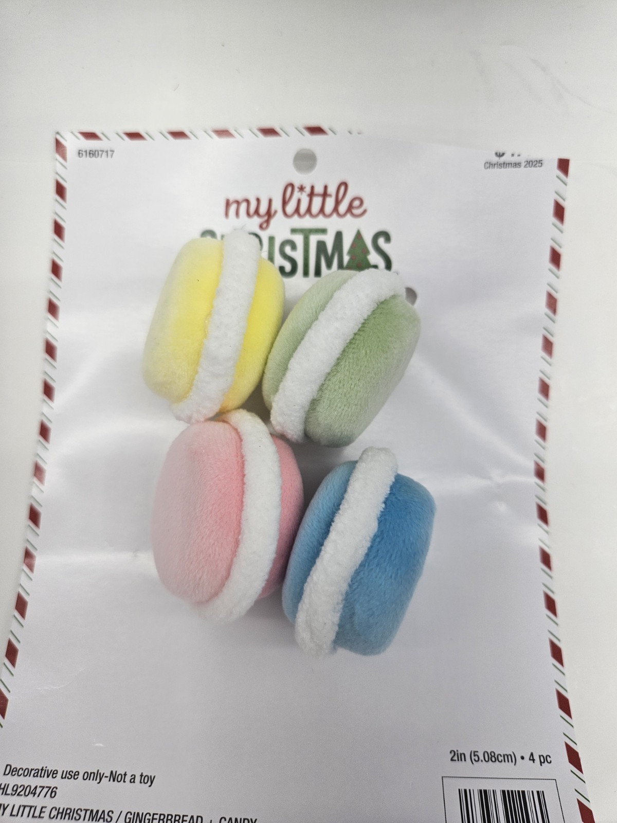 • Hobby Lobby Macaroon Ornaments Set Of 4 Velour Colorful Pastel Gingerbread Candy