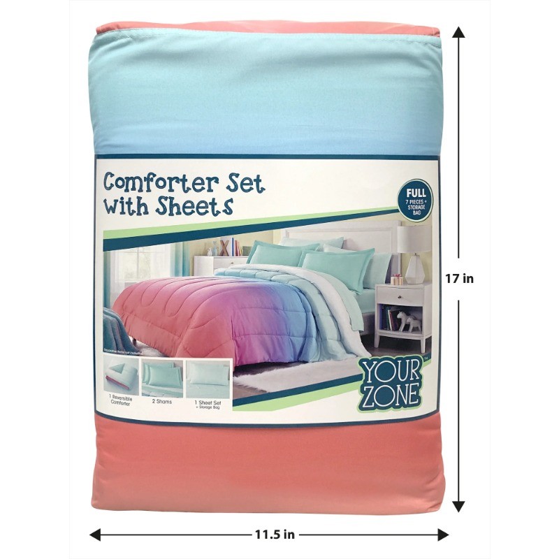 Your Zone 7 Piece Rainbow Ombre Polyester Bedding Set for Girls, Full