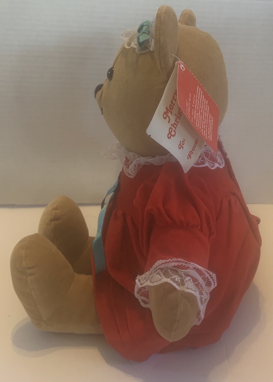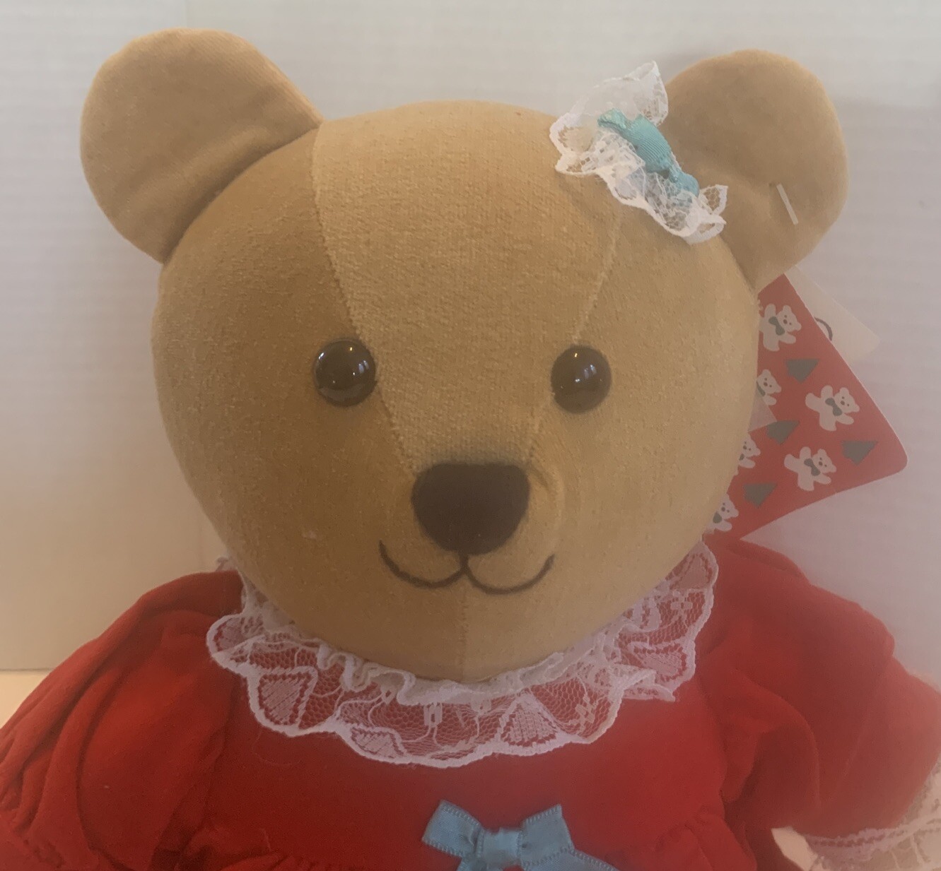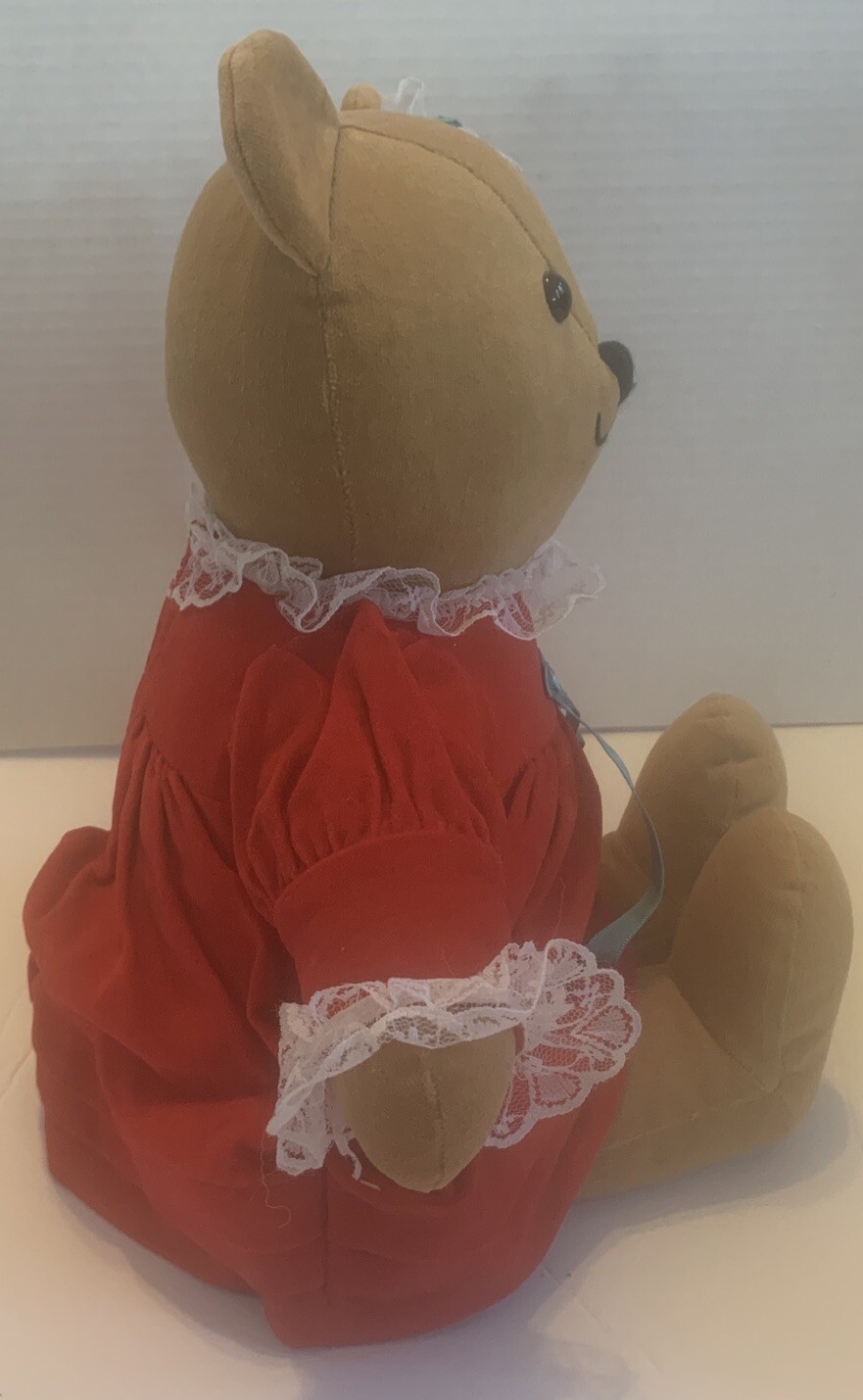 Dakin VTG 84 Elizabeth Bear Plush,Red Velvet Dress Lace,Stuffed Animal Xmas Tags