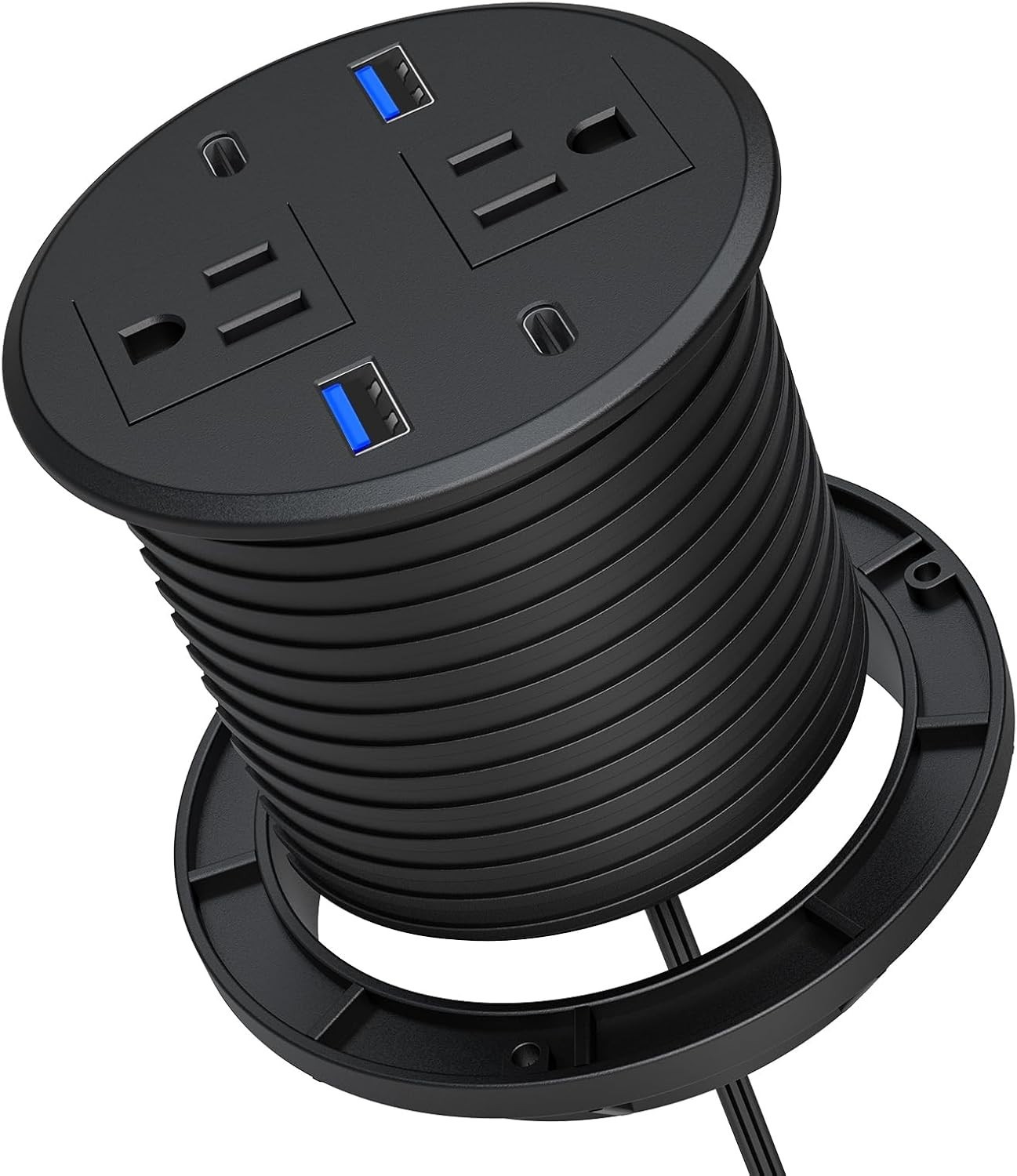Recessed Power Grommet with 2 AC Outlets 4 USB Ports - Fast Charge Convenience
