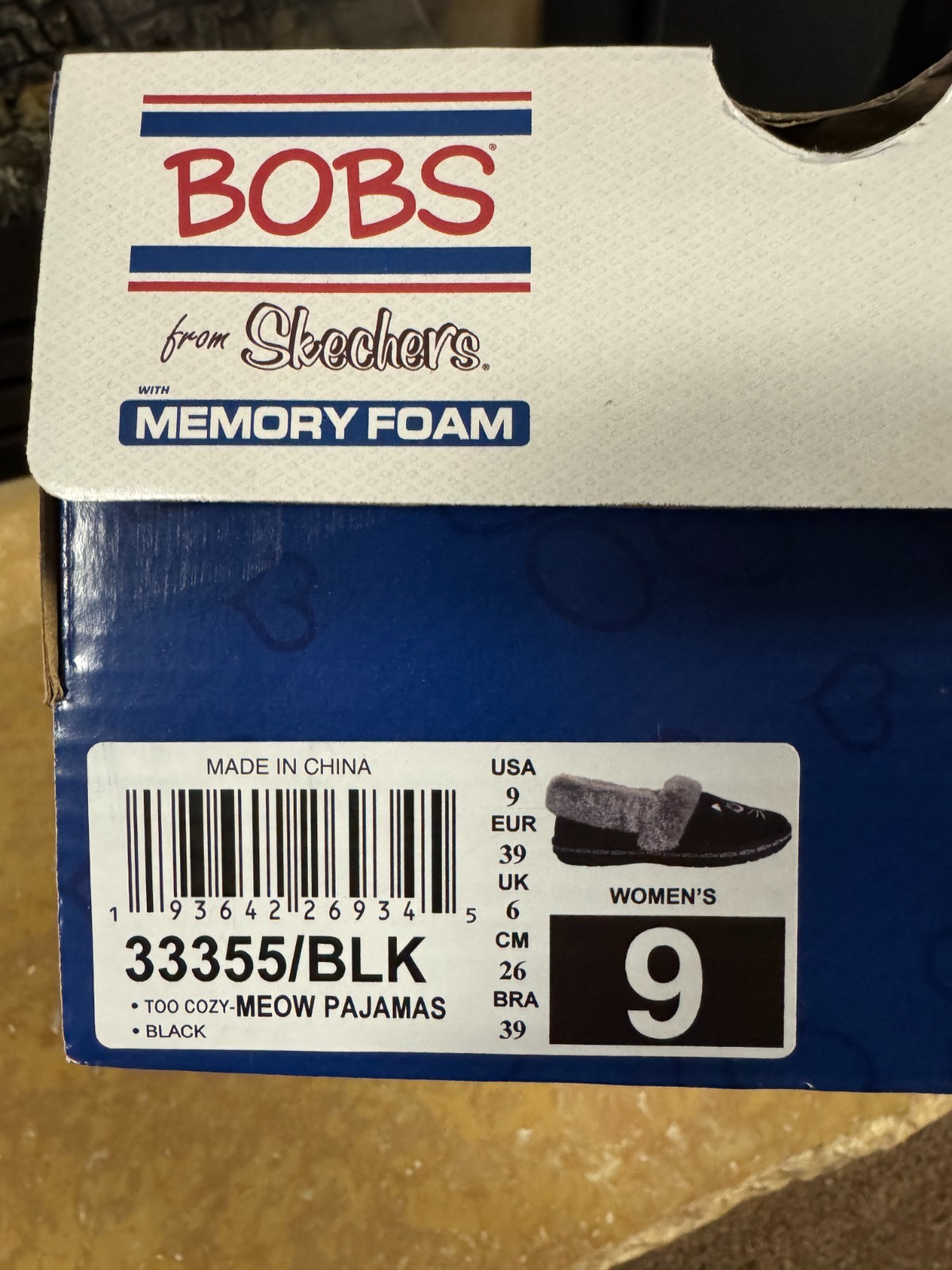 NEW Skechers Bobs Women's Too Cozy Meow Pajamas Black Cat Kitten Slippers- 9