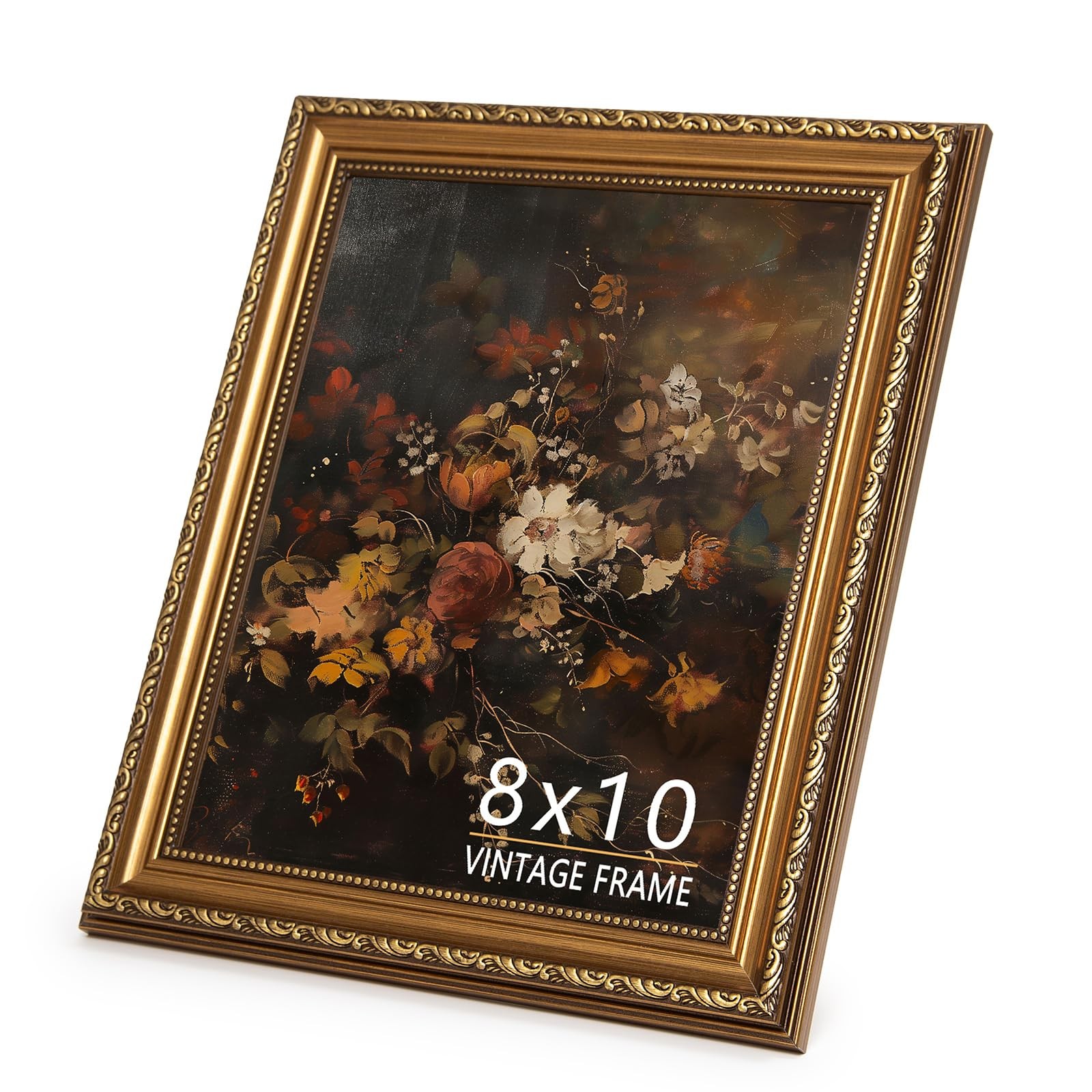 8x10 Picture Frame, Vintage Bronze Gold Picture Frame for Tabletop Wall Mou...
