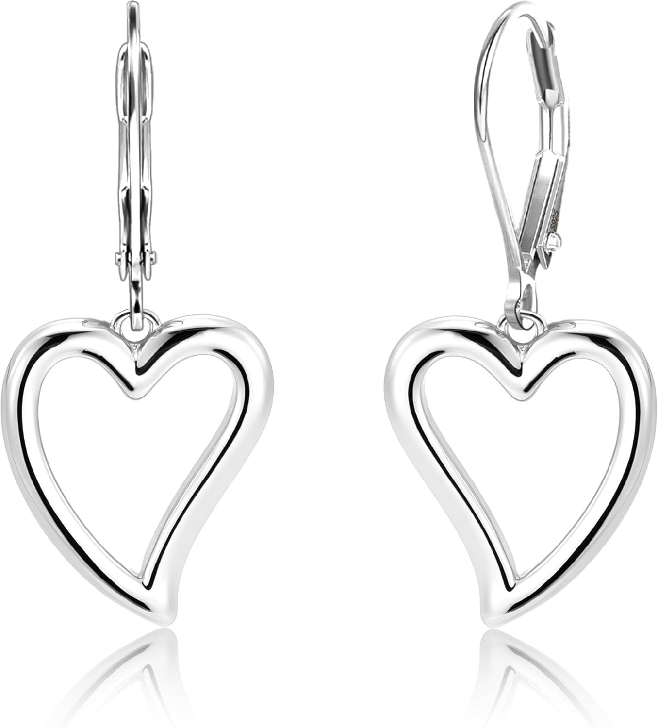 Sterling Silver Heart Dangle Earrings for Women Trendy Openwork Silver Heart ...