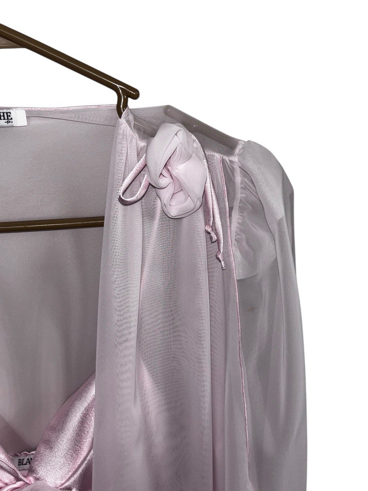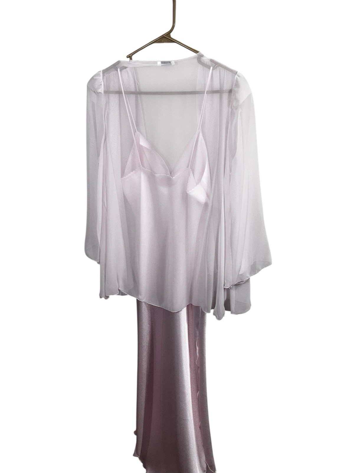 как выглядит Vintage Blanche Intime Pink Satin Nightgown Chiffon Robe Set Small 1950s Glam фото