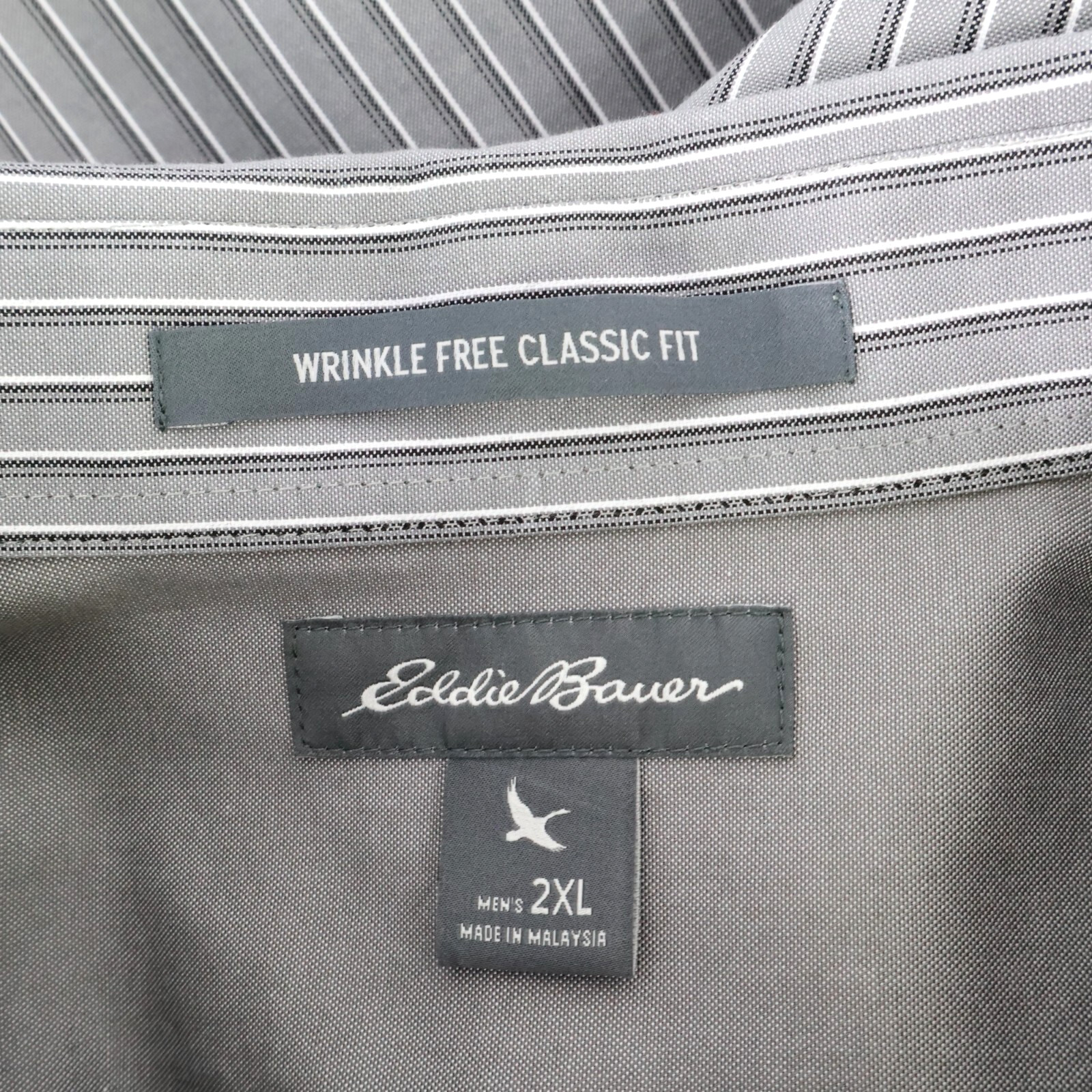 Eddie Bauer Dress Shirt Wrinkle Free Classic Fit Mens Sz 2XL Gray Striped Cotton