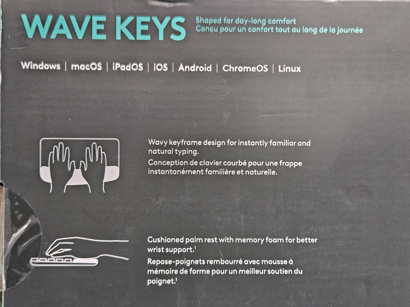 Logitech Ergo Series Wave Keys Wireless Ergonomic Keyboard With Palm Rest - New