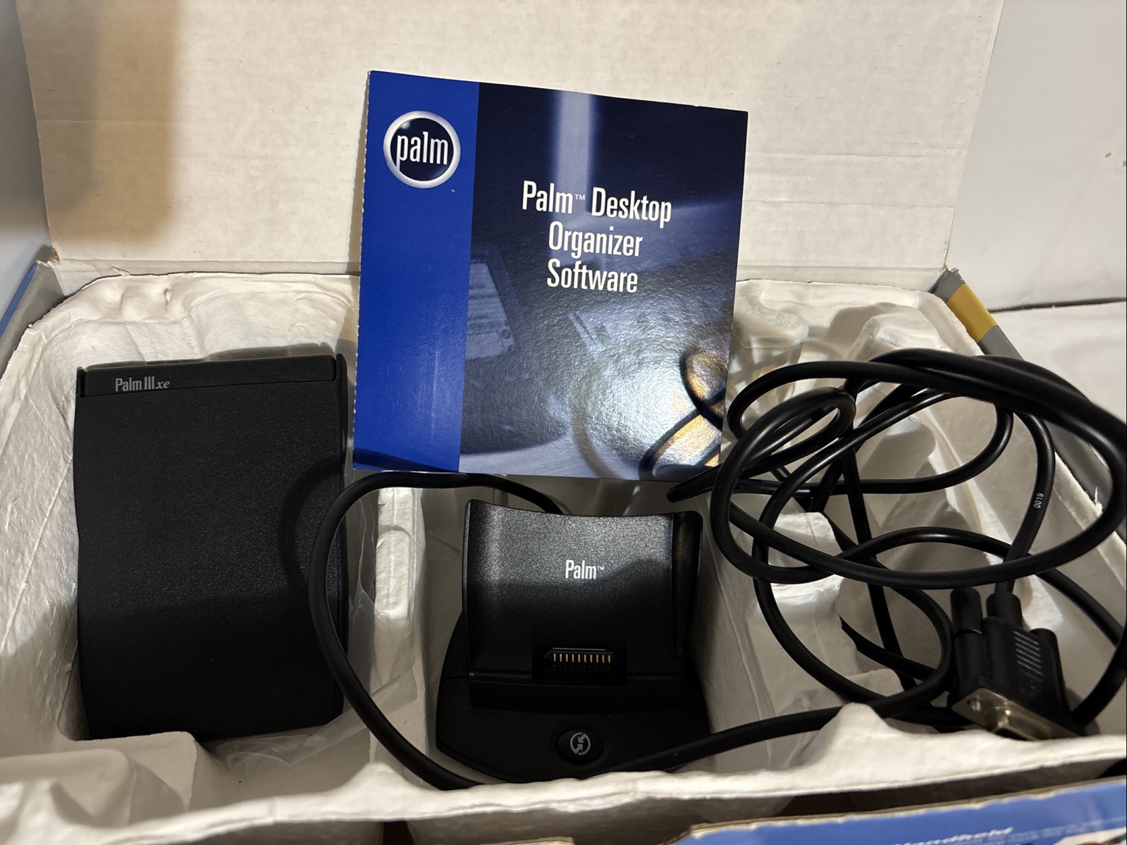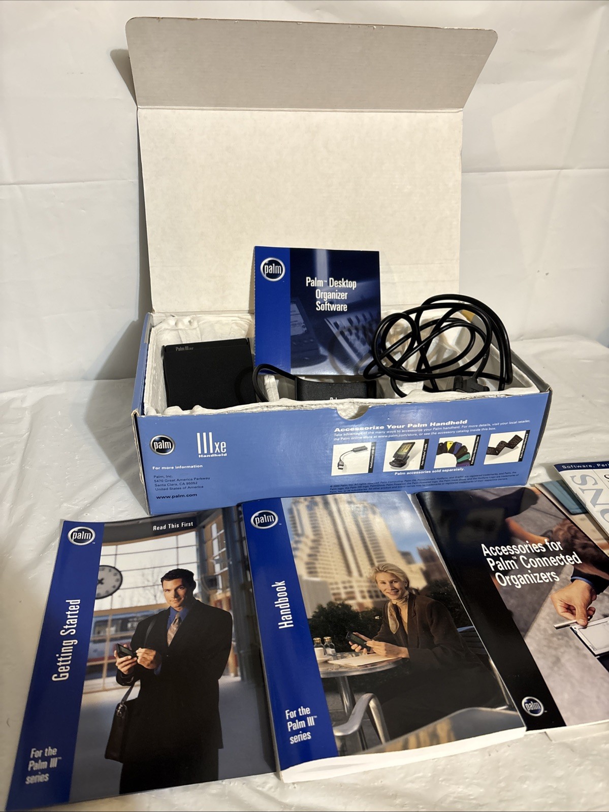 Vtg Palm IIIxe Handheld Personal Organizer PDA Original Box Manuals Disc Cradle