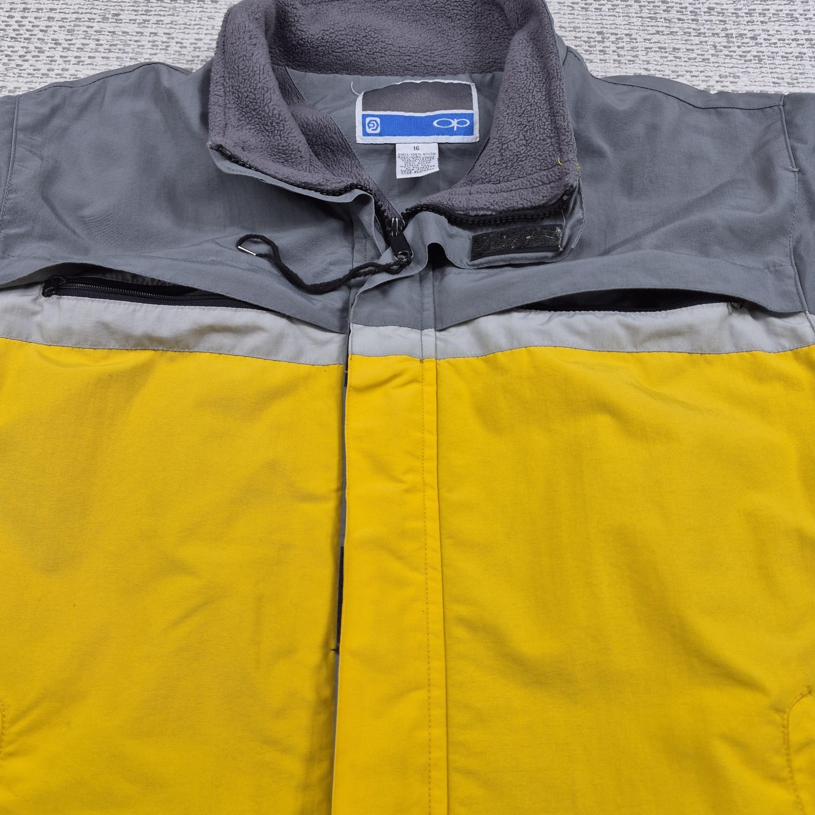 Ocean Pacific Ski Jacket Youth 16 Yellow Gray Colorblock Fleece Lined Snow Warm
