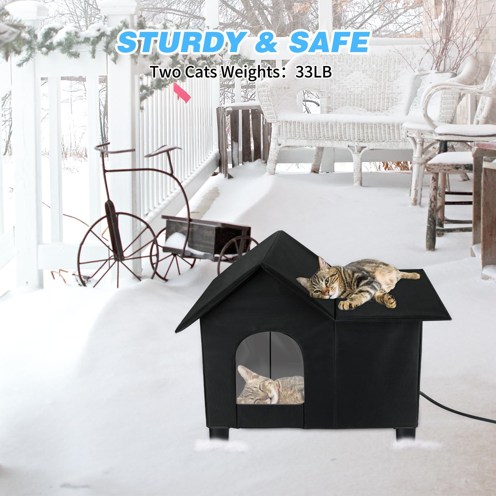 Large Heated Cat House for Outside, Elevated Outdoor Heated Cat House Weather...