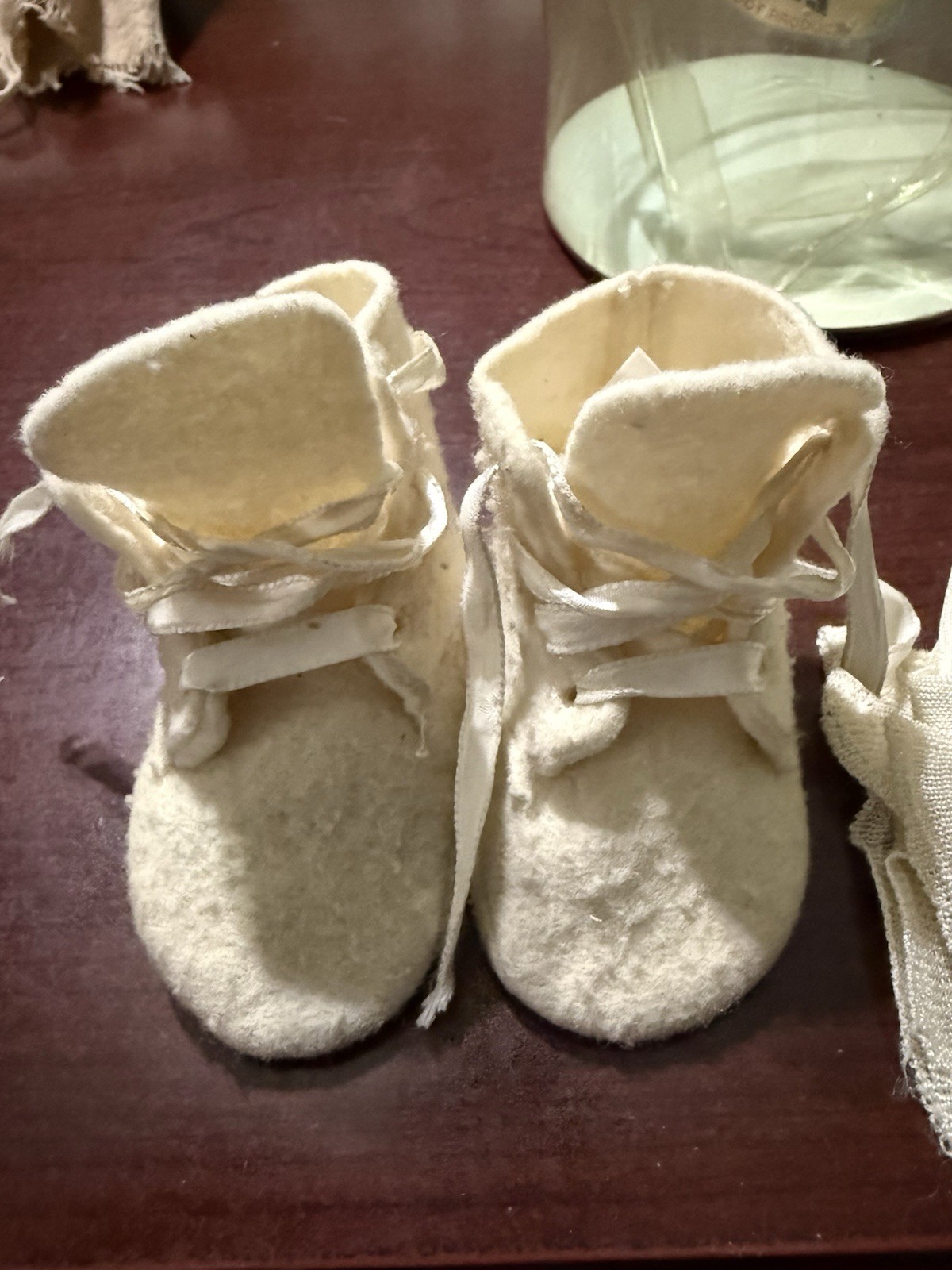 как выглядит Vintage Baby Deer Infant White Felt Shoes, Size 0 In Original Box Trimfoot фото