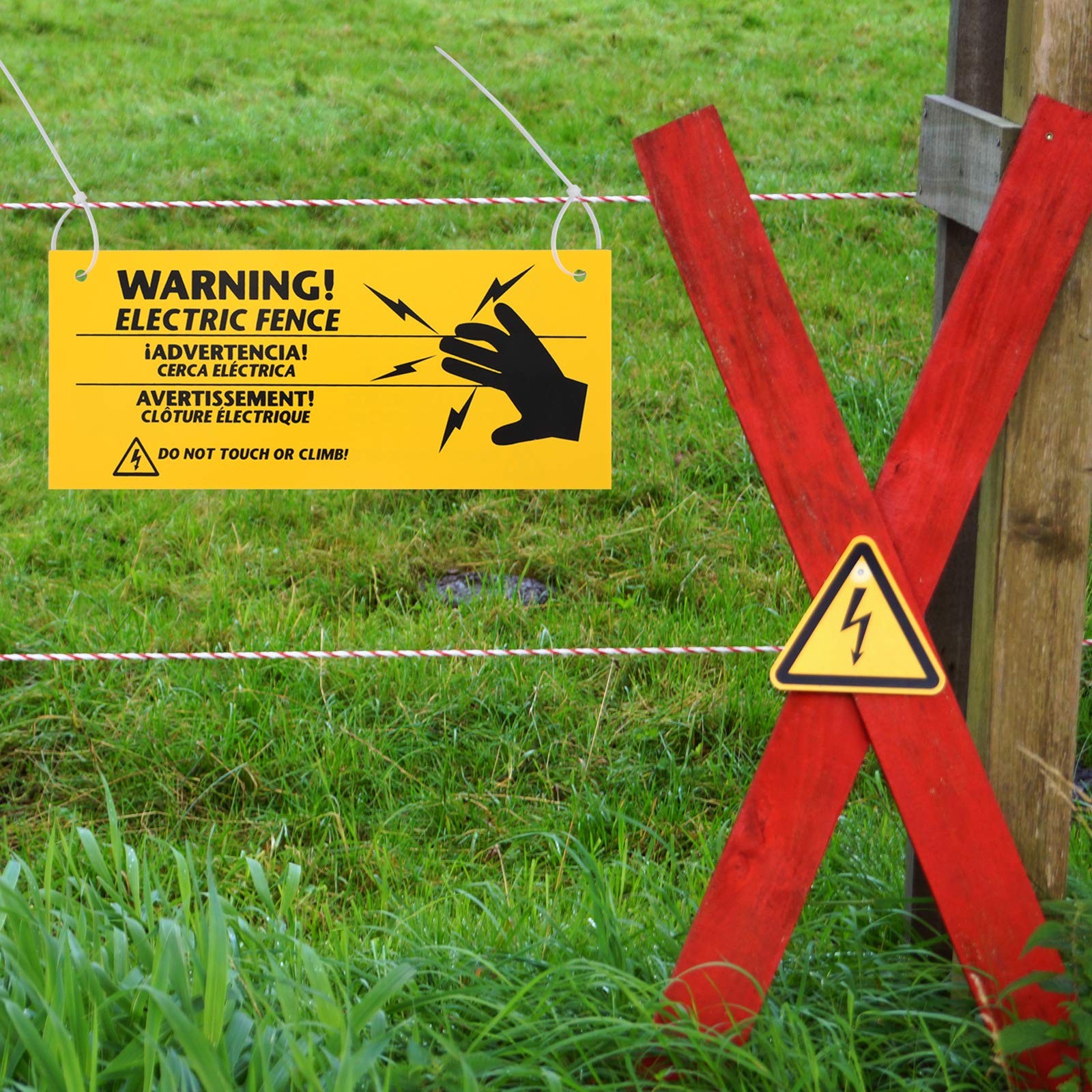 6 Pieces Electric Fence Warning Signs with 12 10 x 4 inches, yellow and black