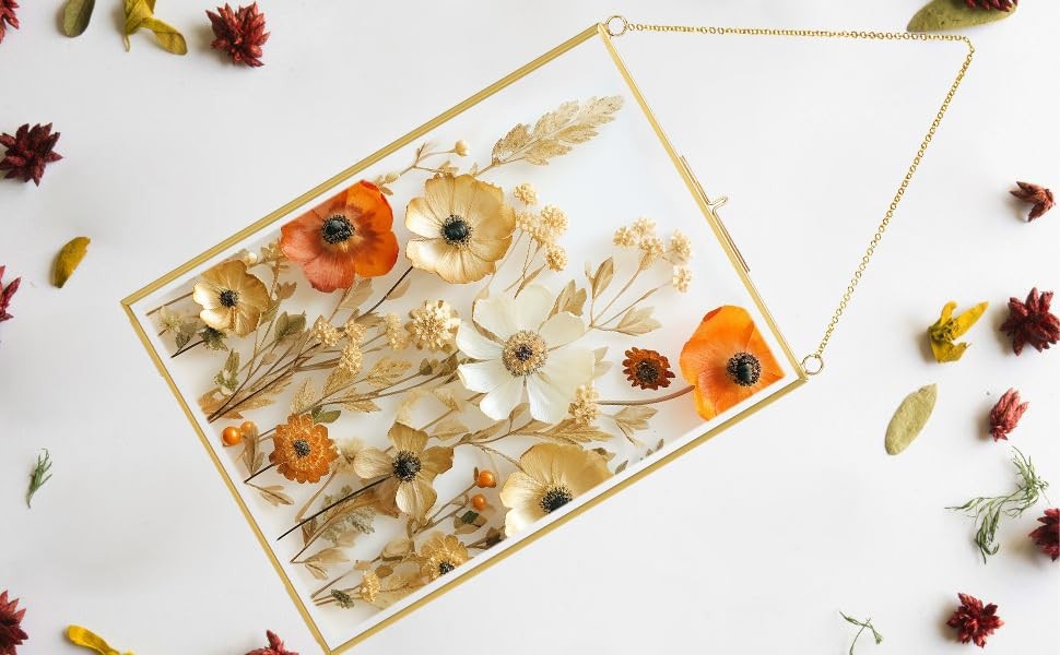 Brass Hanging Photo Frame,8x12 inch Double Glass Frame for Pressed Flowers,Cl...