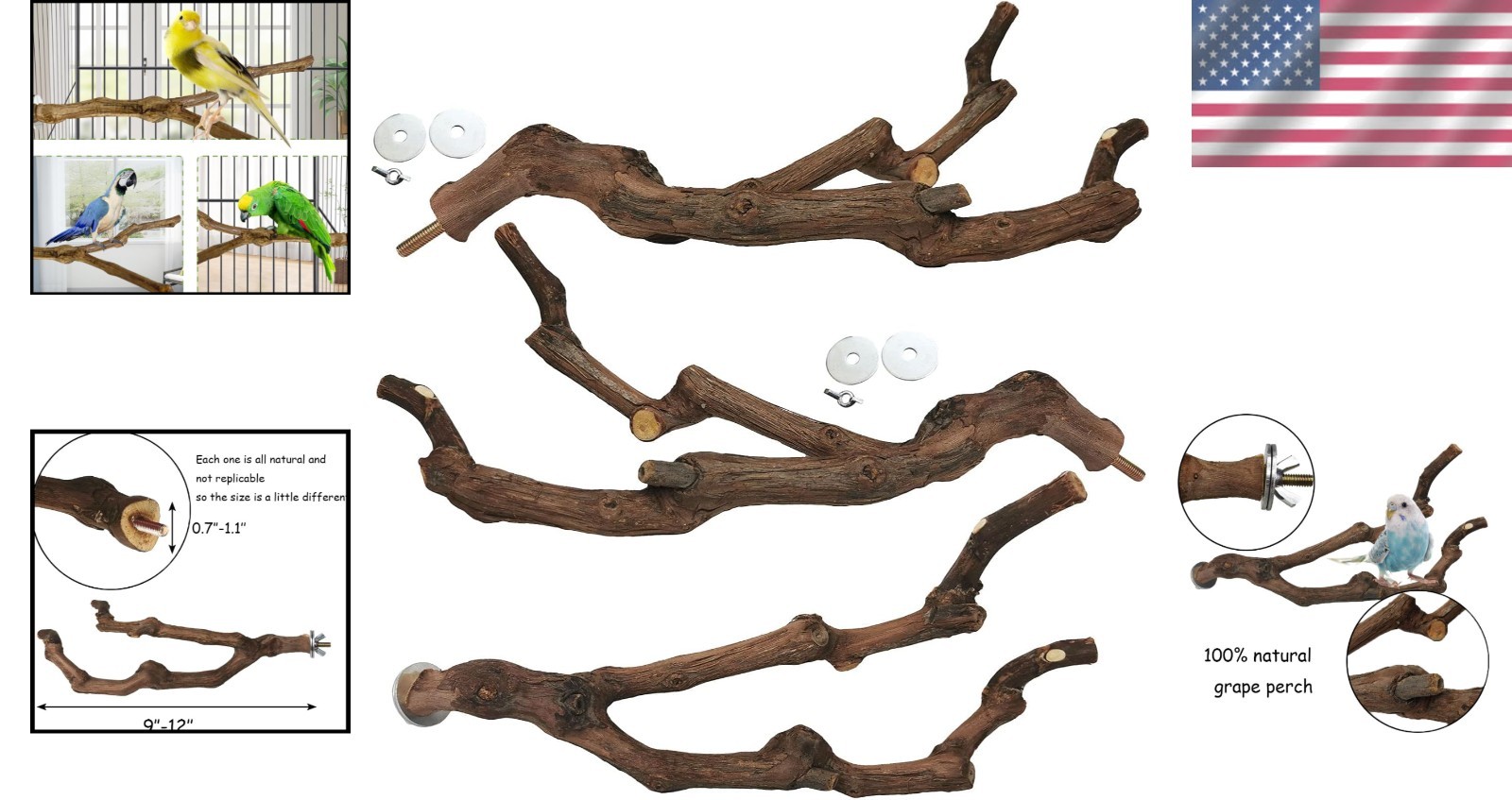 Durable Grapevine Bird Perch 3PCS Paw Grinding Chewable Cage Stand