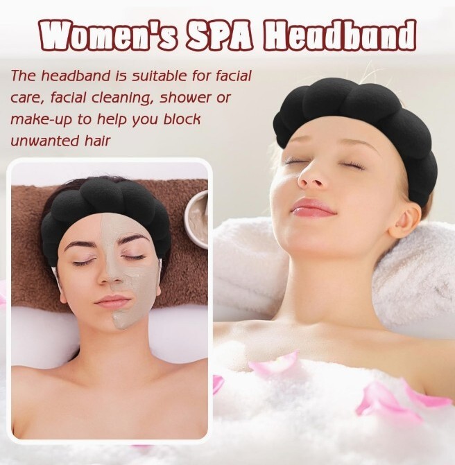 Spa Combo Pack Black Headband Wristband 12 Elastic Hair Tie Face Wash Set