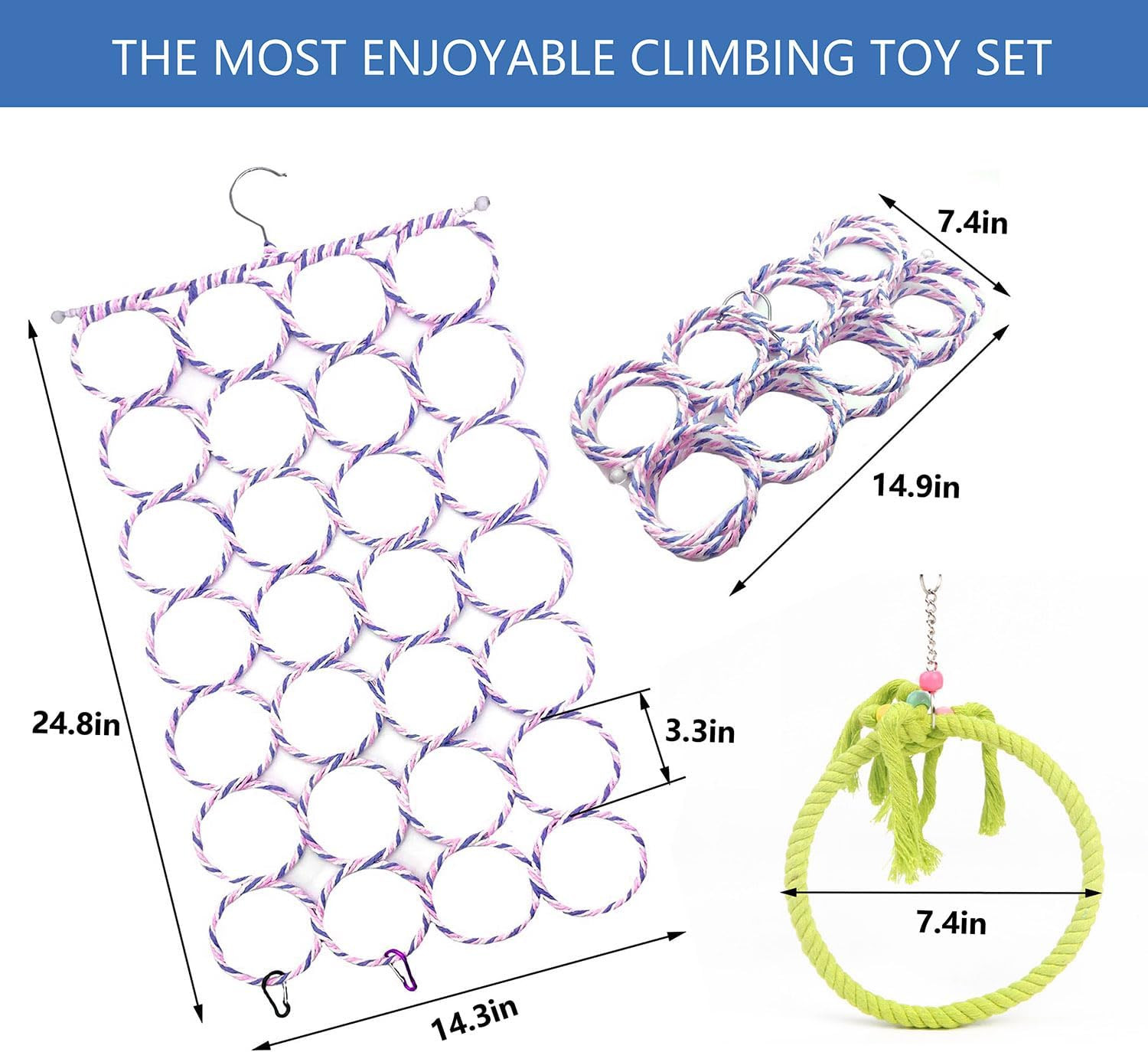 3 Pack Swing Hanging Toys,Bird Climbing Rope Net Ladders Small Medium Pet