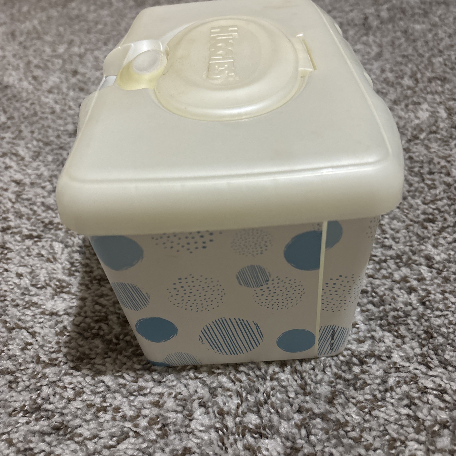 как выглядит Huggies Wipes Container Full Size Pop Up Feature EMPTY "Polka dots" фото