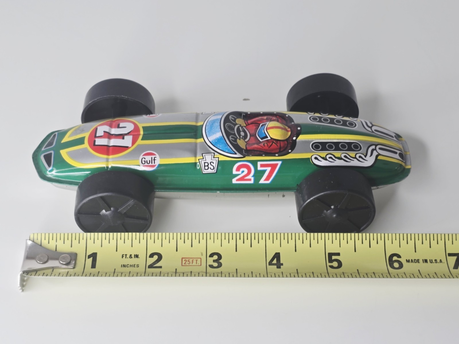 Vintage - Tin Gulf 27 Race Car - Plastic Wheels - 6.5 Long