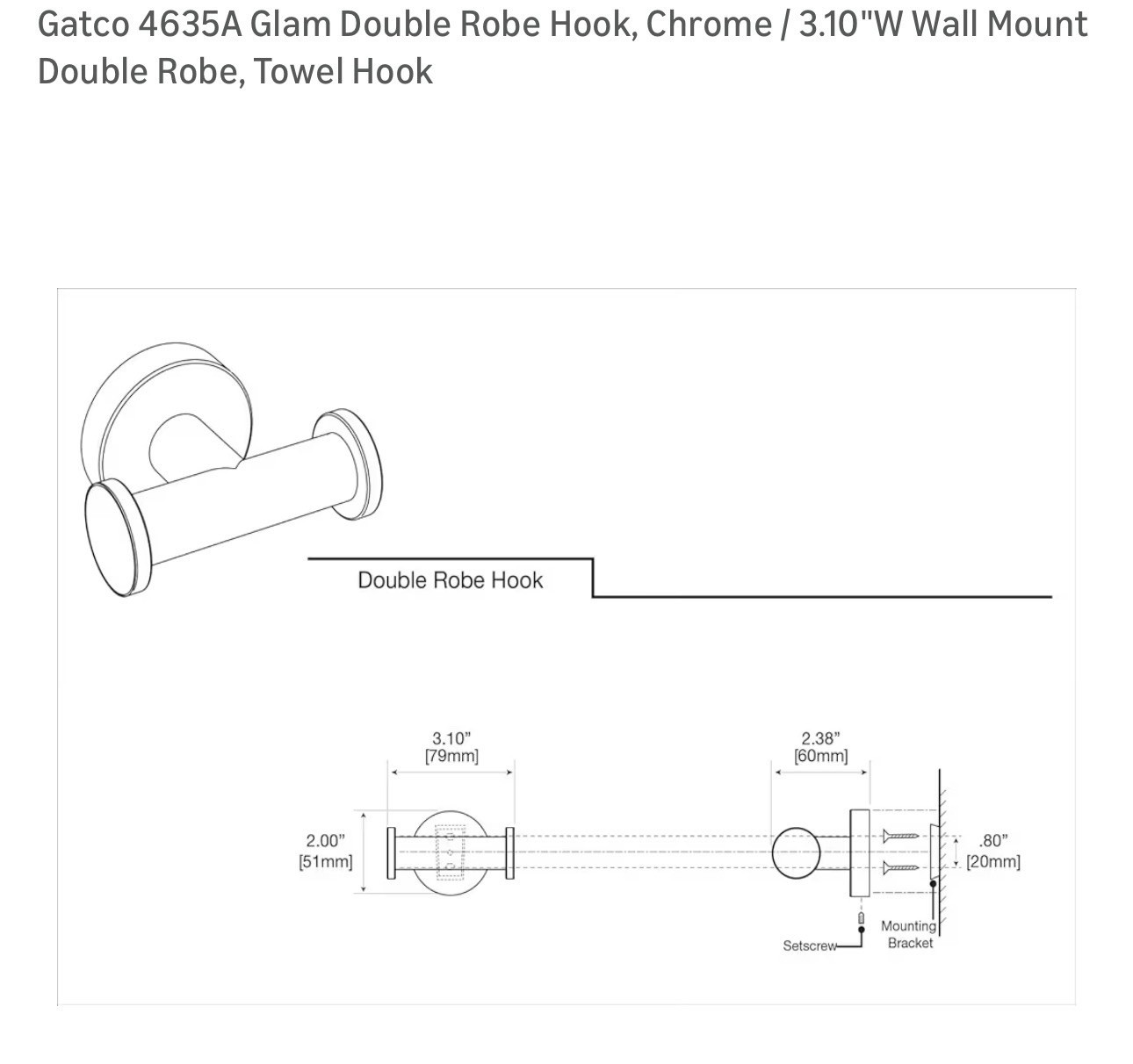 как выглядит Gatco Double Robe Hook Chrome фото