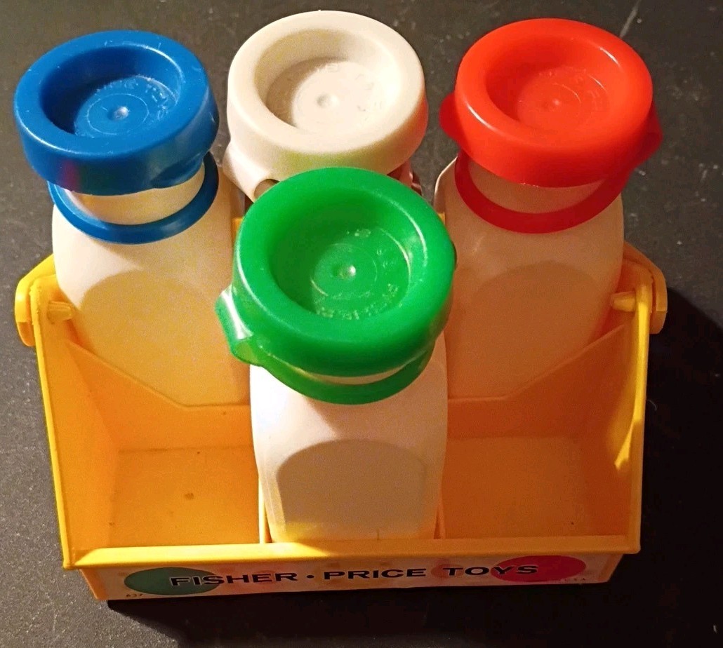 как выглядит Mattel 12 Tuff Stuff Plastic Grocery Play Food Fisher Price 4 Milk Carrier фото