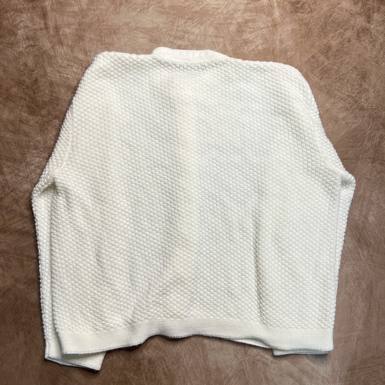 как выглядит Vintage 60s Waffle Cable Knit Textured Cardigan Sweater White Button Up Cottage фото