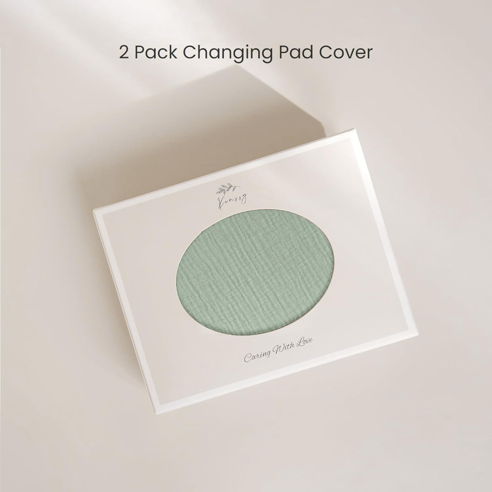2 Pack Muslin Changing Pad Covers for Boys, Ultra Soft Breathable Cotton Ba...