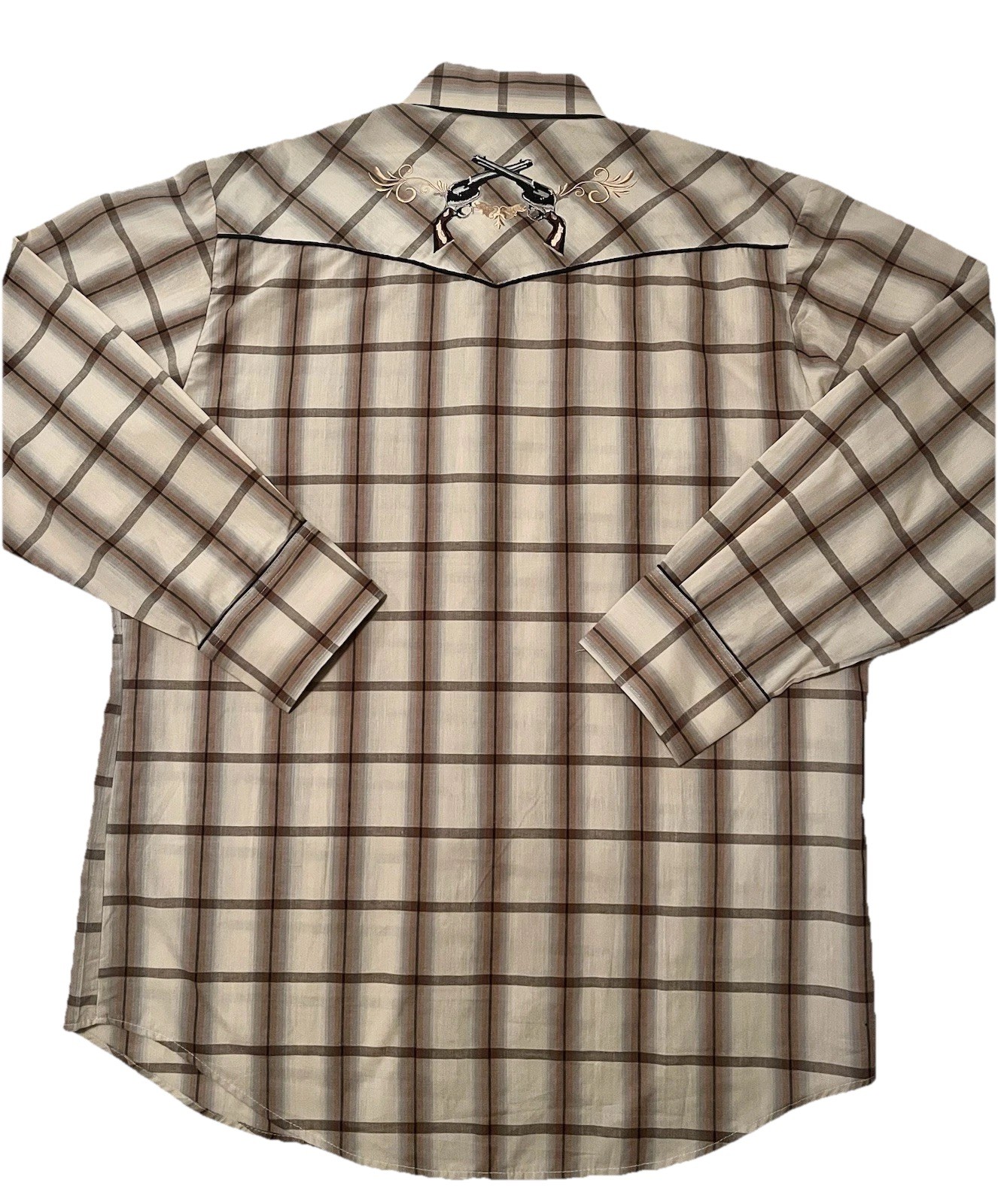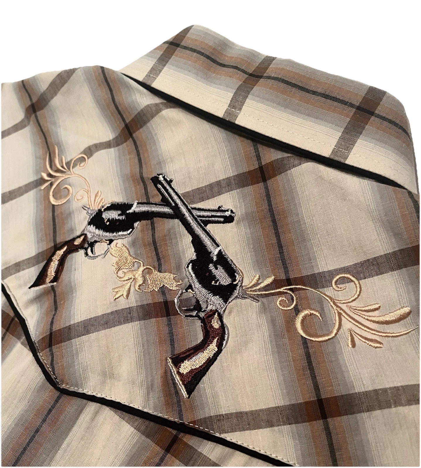ROPER Mens XL Western Shirt-Embroidered Pearl Snap-Plaid-Stitched Revolvers-Rare