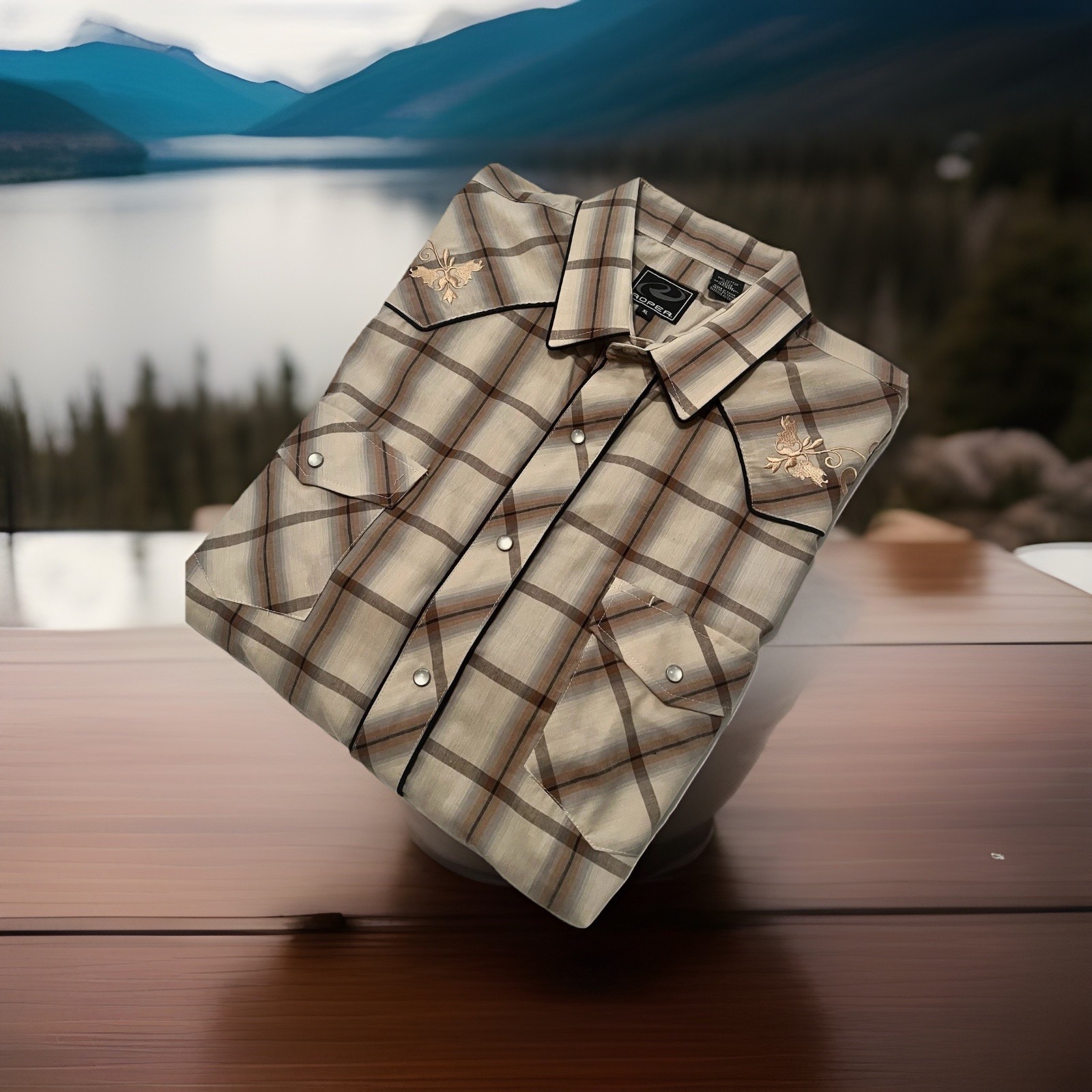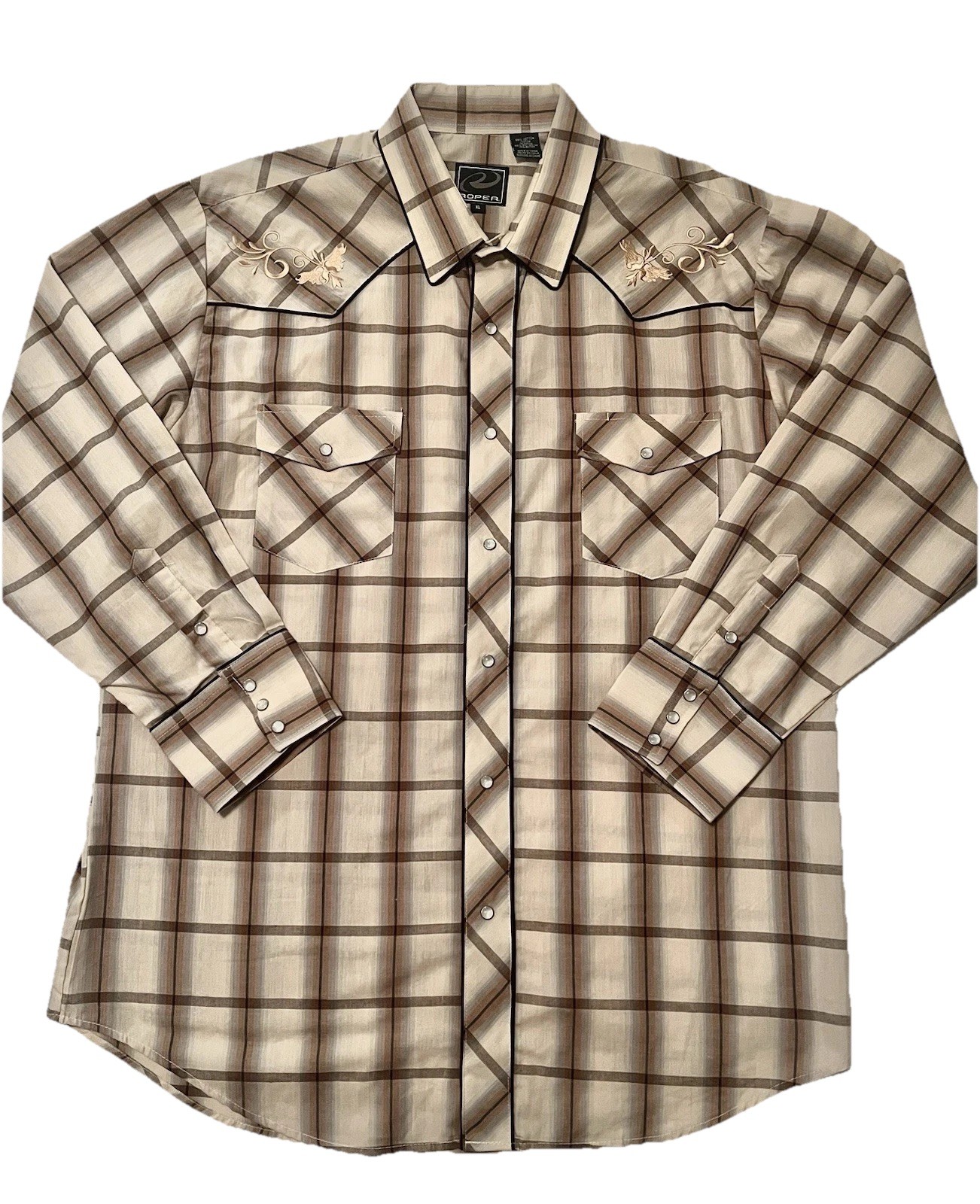 как выглядит ROPER Mens XL Western Shirt-Embroidered Pearl Snap-Plaid-Stitched Revolvers-Rare фото