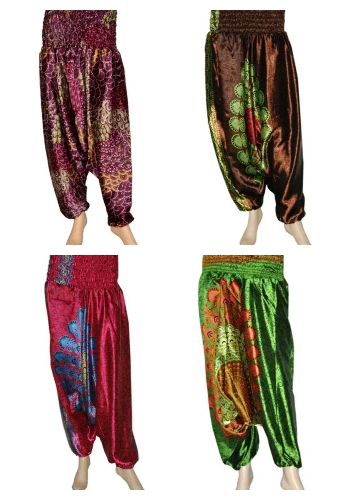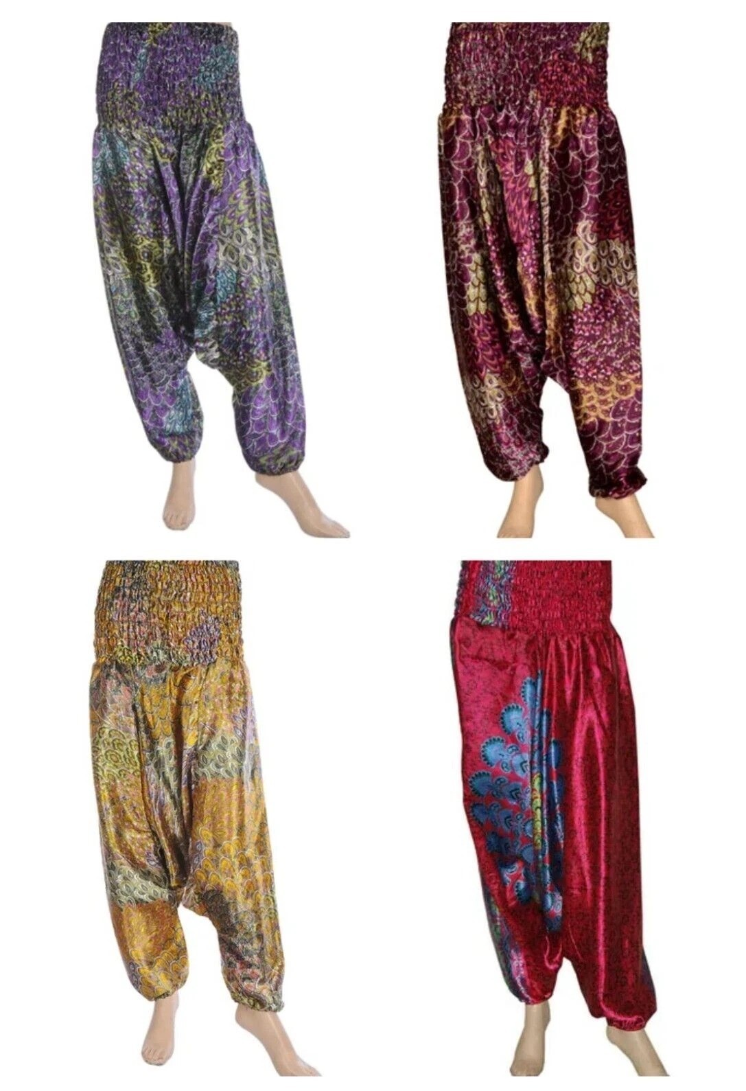 Lot Of 3 Pcs Indian Vintage Silk Sari Boho Harem Trousers Women Gypsy Pants