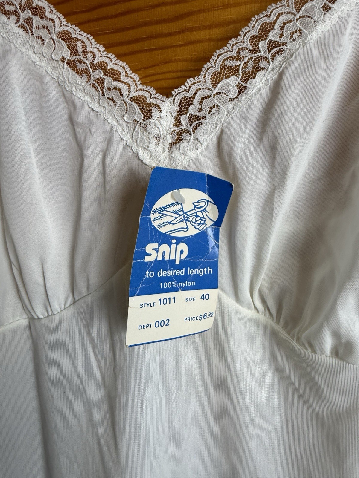 как выглядит Vtg White Nylon Full Slip Snip Off Hem Style 1011 Size 40 фото