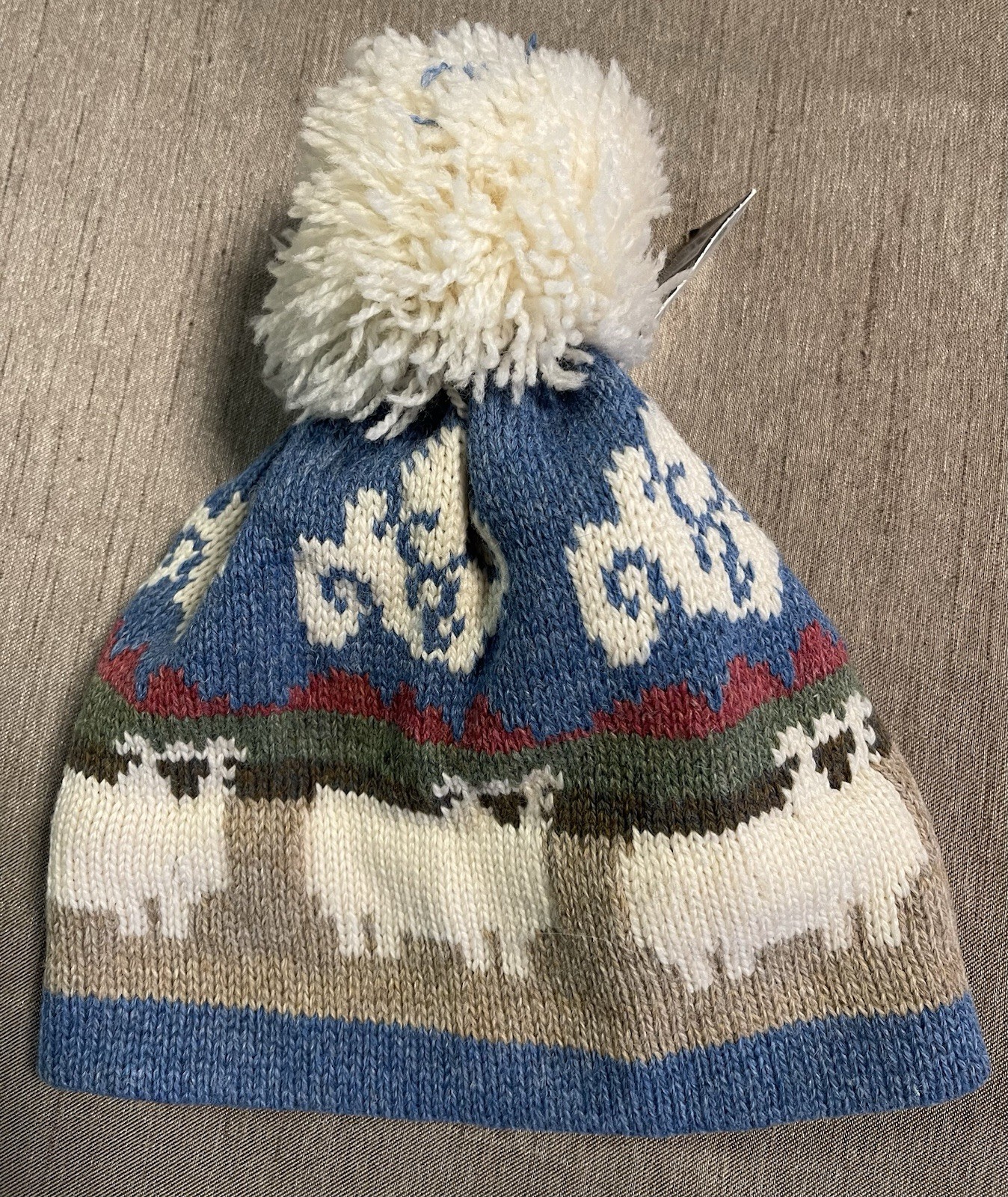 Vintage FINE SCOTTISH WOOL SPINNERS POMPOM BEANIE HAT, Sheep Design, Adult, NWT